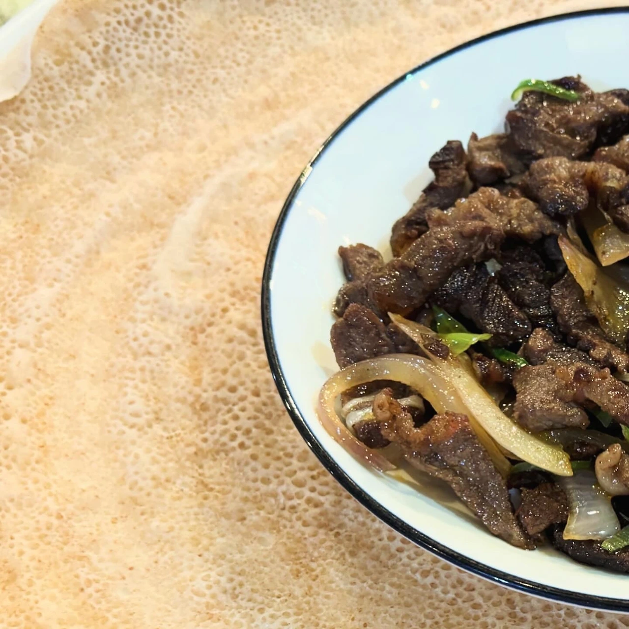 서울에서 만나는 에티오피아. 오늘은 식당을 여는 날이라 에티오피아 음식을 먹을 수 있었어요. 식당 안에 에티오피아 사람들이 많아 반가웠어요. 게다가 벨레투(Beletu)에 커피를 마시러 왔던 손님을 거기서 만나 더 반가웠어요. 저를 보자마자 식당 안에 있는 사람들한테 한국인 ‘벨레투’ 왔다고 소개를 해서 깜짝 놀랐어요. 슈퍼푸드 중 하나인 ‘떼프(Teff)’를 원료로 만드는 인제라는 글루텐 제로 음식인데 이 식당에서는 쌀가루를 첨가해 우리나라 떡맛이 났어요. 아무튼 에티오피아 친구랑 맛있게 먹었어요.