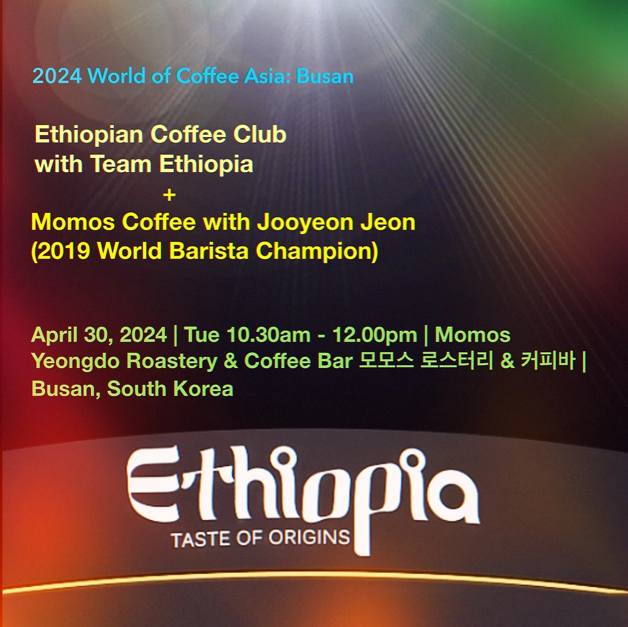 2024년 4월 30일 오전 10시 30분에 Team Ethiopia 15명과 함께 부산 모모스 로스터리 & 커피바에서 뵙겠습니다!