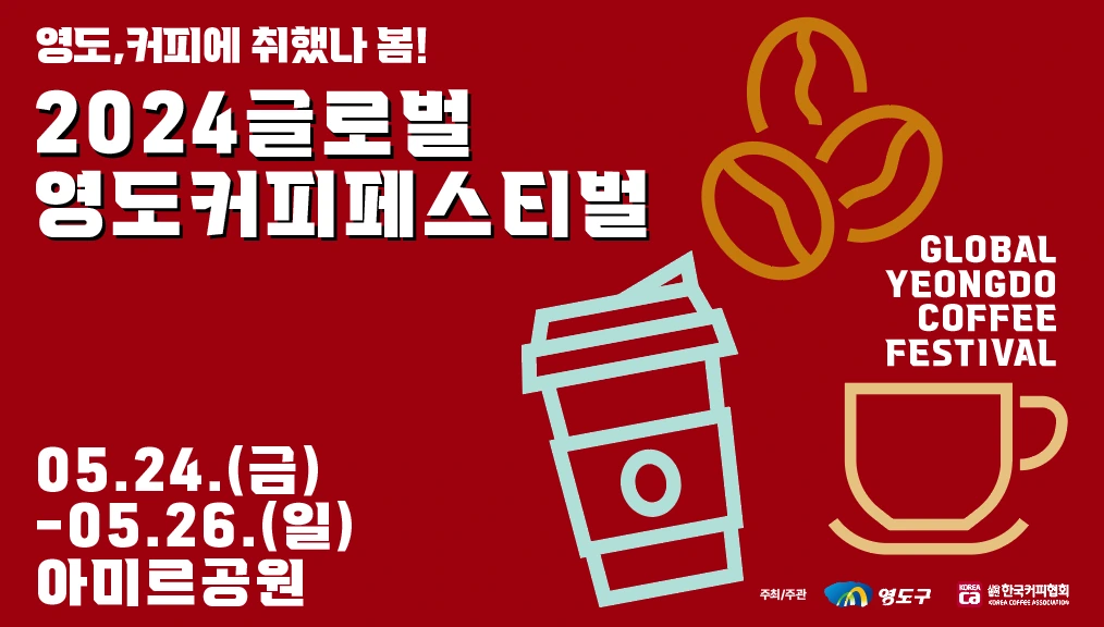 2024 글로벌 영도커피페스티벌이 오는 5월 24일부터 26일까지 부산 영도구에 위치한 아미르공원(부산 해양박물관 근처) 일대에서 개최될 예정입니다.