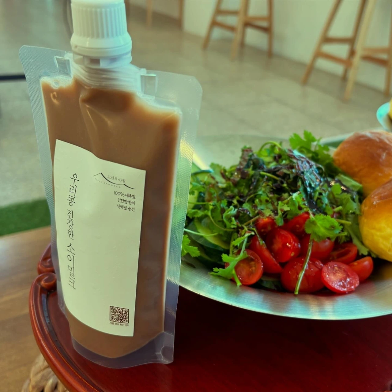 콩으로 요리한 음식을 좋아하는데 도시에서 살던 자매가 고산으로 이주해 ‘고산의 아침’이라는 회사를 만들어 콩음료와 홈무스(하무스)를 팔고 있어 매일 아침 운동을 끝내고 자전거를 타고와 들러서 먹고 갔다. 언니가 이학박사 출신이라고 들었는데 박사님이 운영하는 콩음료 회사이다. 이것저것 먹어봤는데 다 맛있었다.