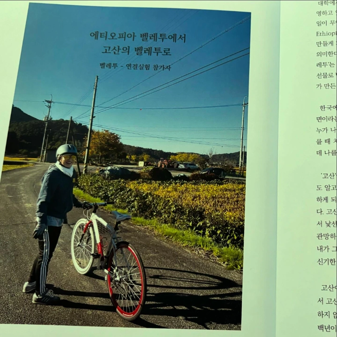내가 고산에 머물면서 느낀 소회를 쓴 짧은 에세이가 있는데 그게 다른 사람들이 쓴 글과 함께 책으로 나왔다고 고산 사람들이 선물을 했다. 자전거와 함께 밝게 웃고 있는 내가 거기 있었다.