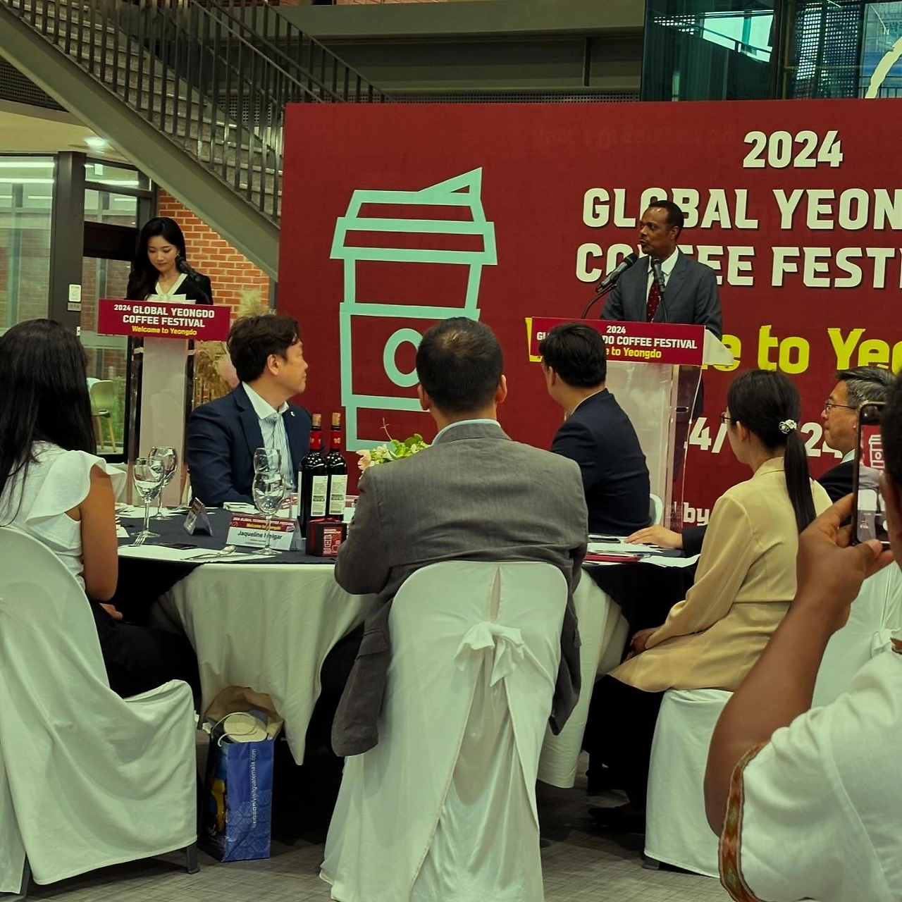 저녁에 축제 만찬장에 초대 받아 에티오피아 친구들과 함께 갔었다. 주한 에티오피아 대사관의 Dessie Dalkie Dukamo 대사님의 스피치 시간이 있었다. 스피치 시간 약 2분 중 1분은 에티오피아 커피의 위대함에 대해서, 나머지 1분은 내 이야기였다. 만찬장에서 “우리가 벨레투 Beletu 라고 부르는 Dr. Yun은 ‘에티오피아 커피 대사 Ethiopian Coffee Ambassador’”라며 나를 소개했다. 대사님은, 벨레투 덕분에 에티오피아와 부산 글로벌 영도커피페스티벌과 인연이 만들어졌고 에티오피아 커피 섹터에서 일하는 분들이 부산에 많이 오고 있다고도 말씀하셨다. 그래서 스피치가 끝난 후 같이 식사할 때 그냥 대사님, 이라고 부르지 않고 나의 대사님 My ambassador, 라고 부르며 화답했다.