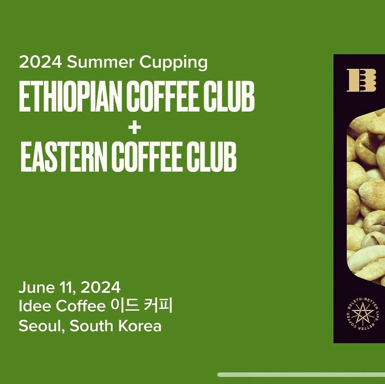 2024 Ethiopian Coffee Club 썸머 커핑 이벤트를 시작했습니다. 올해는 한국만이 아니라 해외에서도 벨레투(Beletu)가 소싱한 에티오피아 커피 비즈니스 커핑을 진행할 예정입니다.