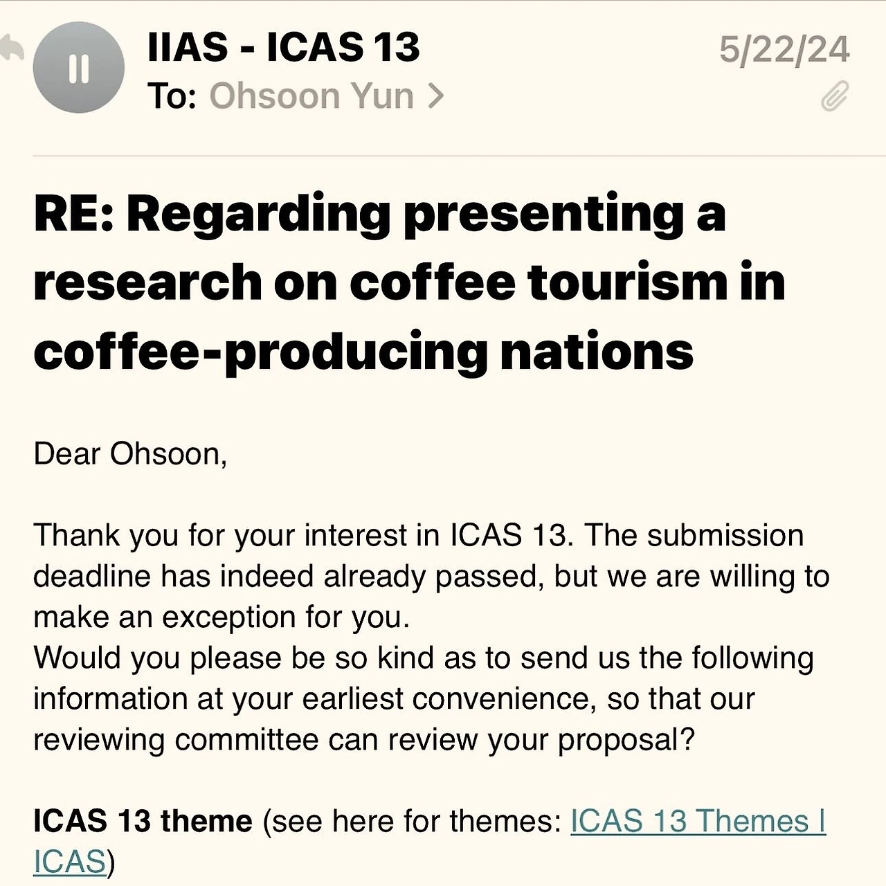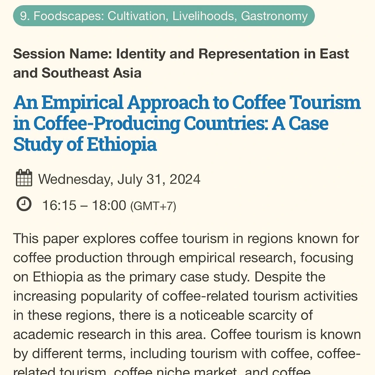 나는 뒤늦게 발표자로 초대가 되어 오랜만에 에티오피아 커피 투어리즘과 관련된 연구 논문을 발표하게 되었다.