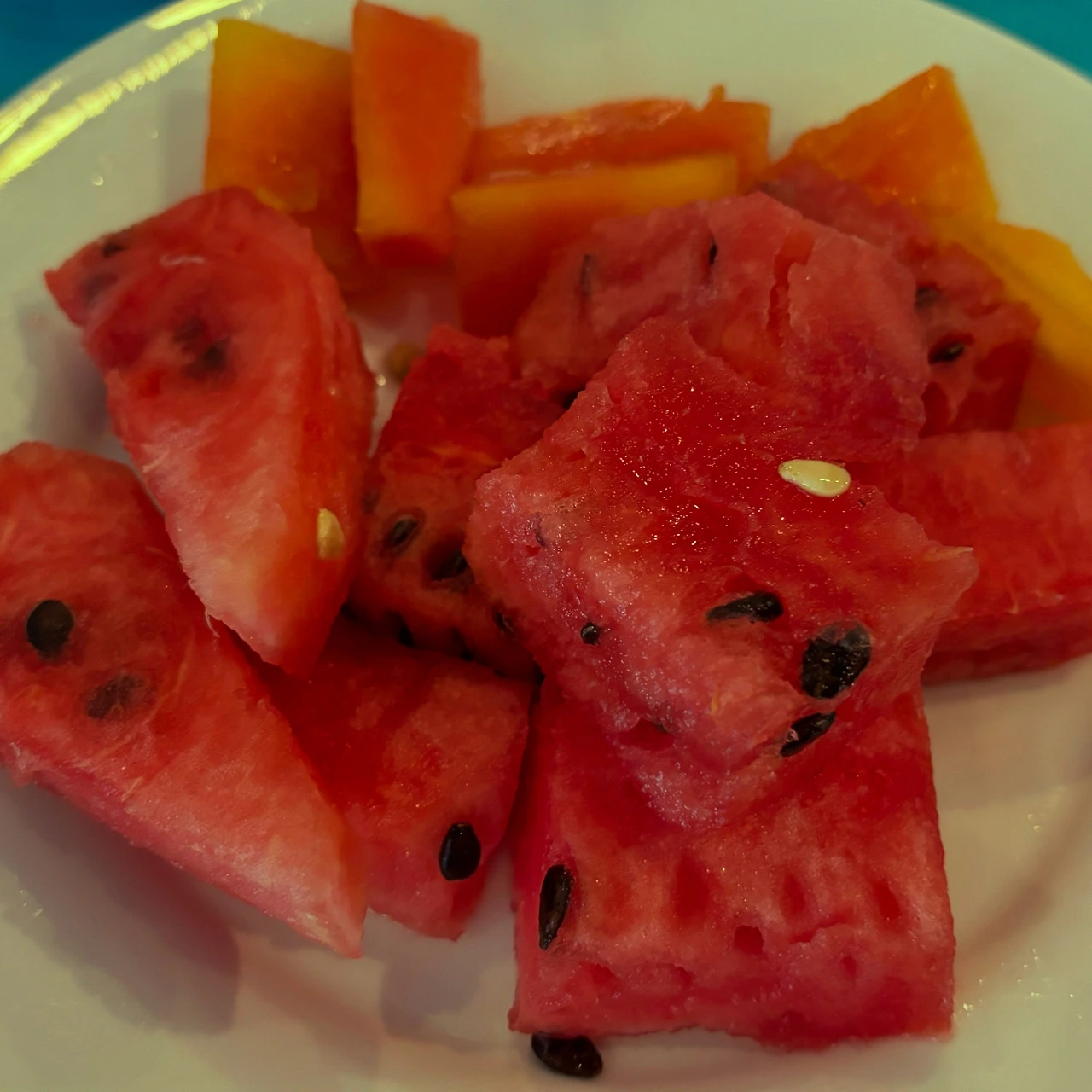 나는 과일을 엄청 좋아하고 한번에 많이 먹는 ‘나쁜’ 습관이 있는데 너무 오래된 습관이라 이제 고치기는 어려울 것 같다. 에티오피아에 내가 좋아하는 과일들이 많은데 요즘 많이 먹고 있는 과일은 수박과 파인애플. 에티오피아에서 칼이 필요한 과일은 위생문제 때문에 많이 피하는 편이다. 그래서 주로 바나나, 아보카도, 오렌지 같은 과일을 즐겨 먹는다. 최근에 머물고 있는 호텔에서 과일을 먹어도 배탈이 나지 않아 수박과 파인애플을 자주 먹고 있다. 제철에 먹는 Made in Ethiopia 수박 은 정말 맛있다. 올해 에티오피아를 세 번째 방문하고 있고 한 번 올 때마다 한달쯤 머물고 있는데 매일 아침 수박을 한 접시씩 먹고 있다. 나 아무래도 곧 Dr Watermelon이 될 것같다.