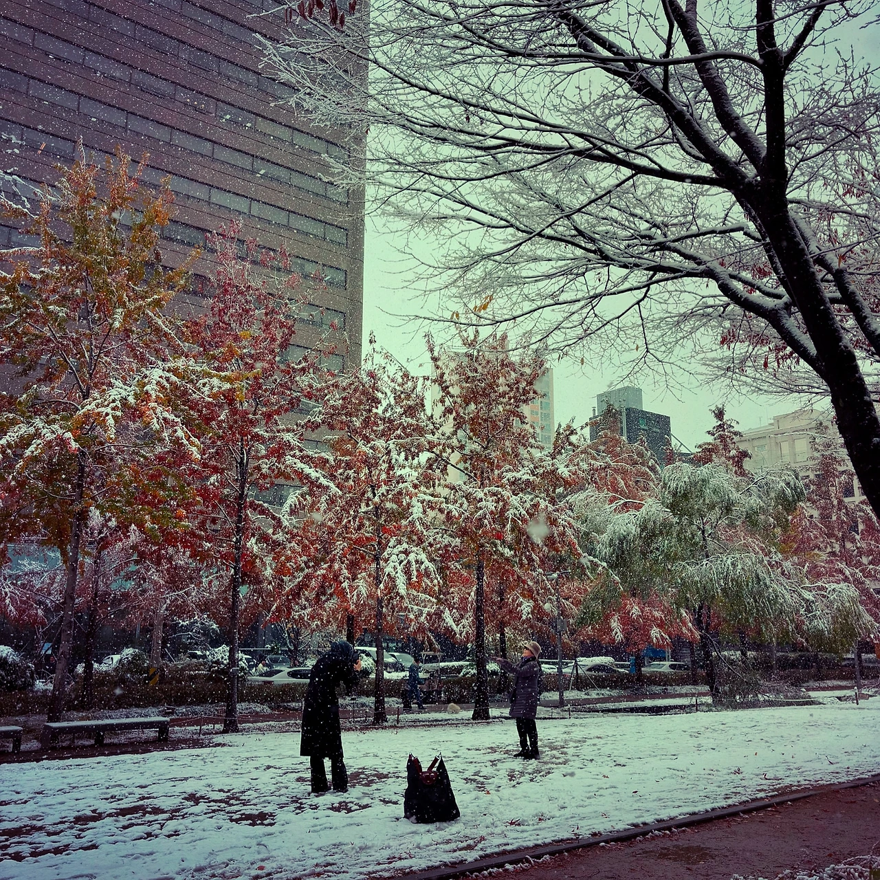 지난번 눈오는 날 찍은 사진이야. 사진 속의 두 사람은 친구처럼 보이고, 서로 유쾌하고 행복한 시간을 보내는 것 같은데, 사실은 싸우고 있었어. 사진 찍는 분이 이런저런 예쁜 포즈를 요구했는데 맞은 편에 있는 분이 눈 많이 온다고 빨리 찍으라고 소리를 치는 중이었어. 가만히 들여다보면 사는 게 참….