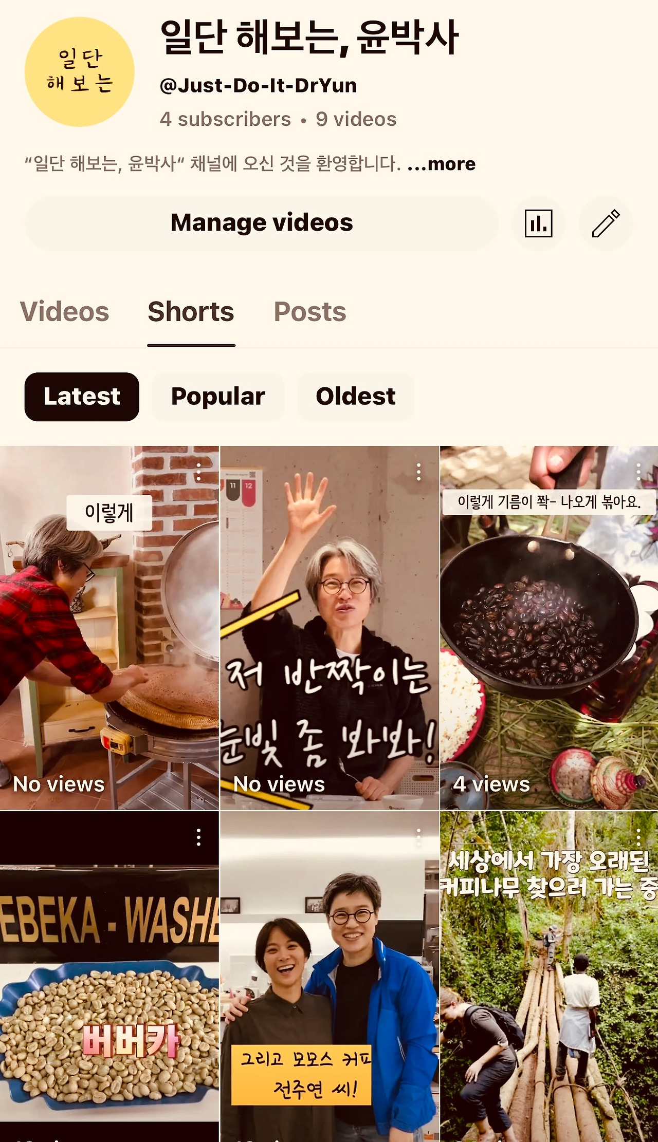 제 채널 이름은 “일단 해보는, 윤박사”예요.