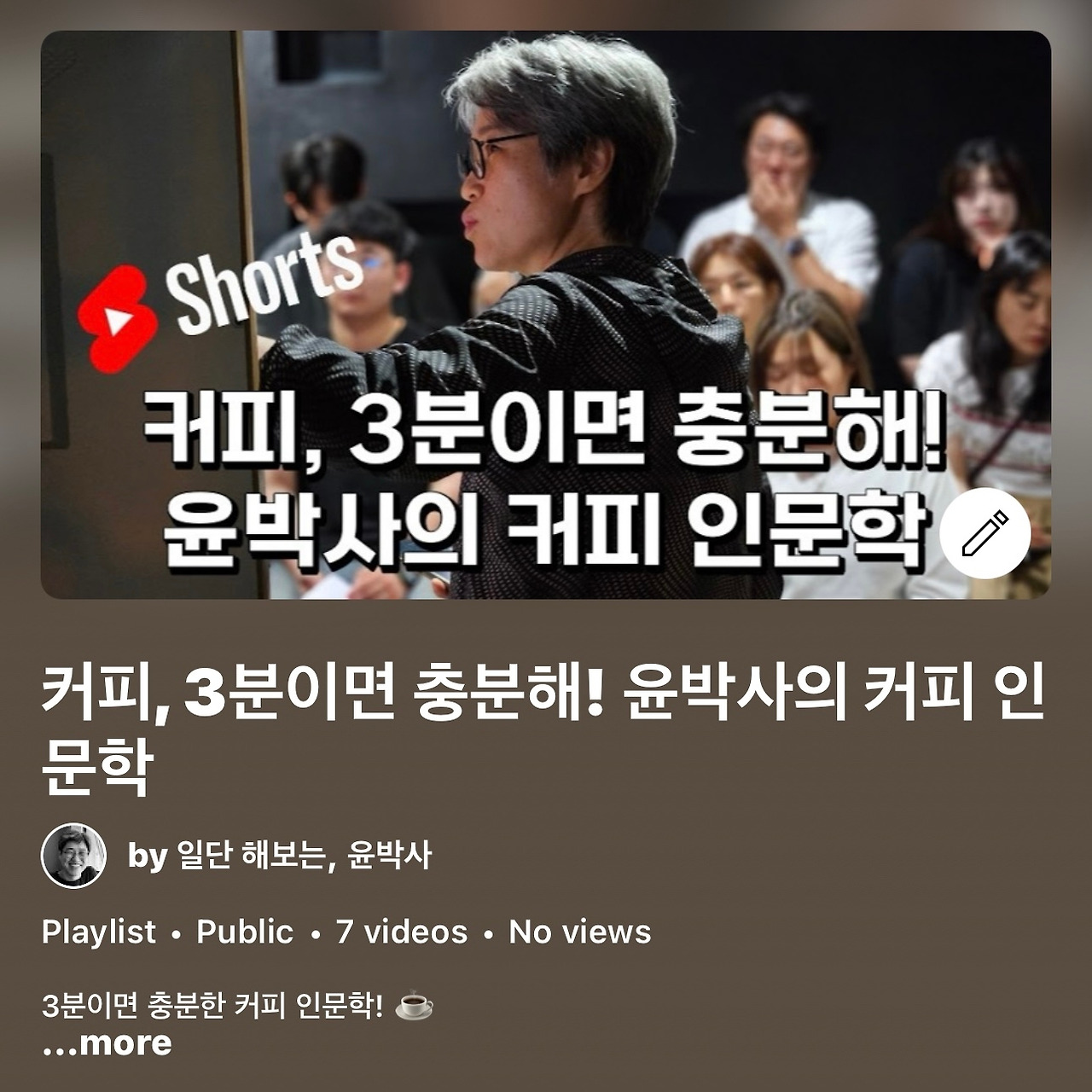 그래서 친절한 윤박사가 “커피, 3분이면 충분해! 윤박사의 커피 인문학” 플레이리스트를 만들었어요.