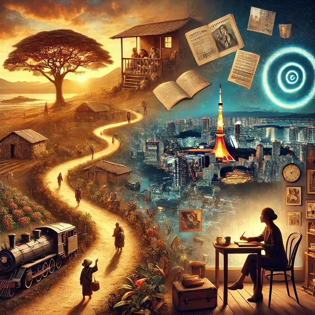 “가장 매혹적인 커피 생산지 에티오피아에서 가장 매혹적인 커피 소비지 일본으로 떠나는 내 여정을 상상력 넘치게 표현해줘.”