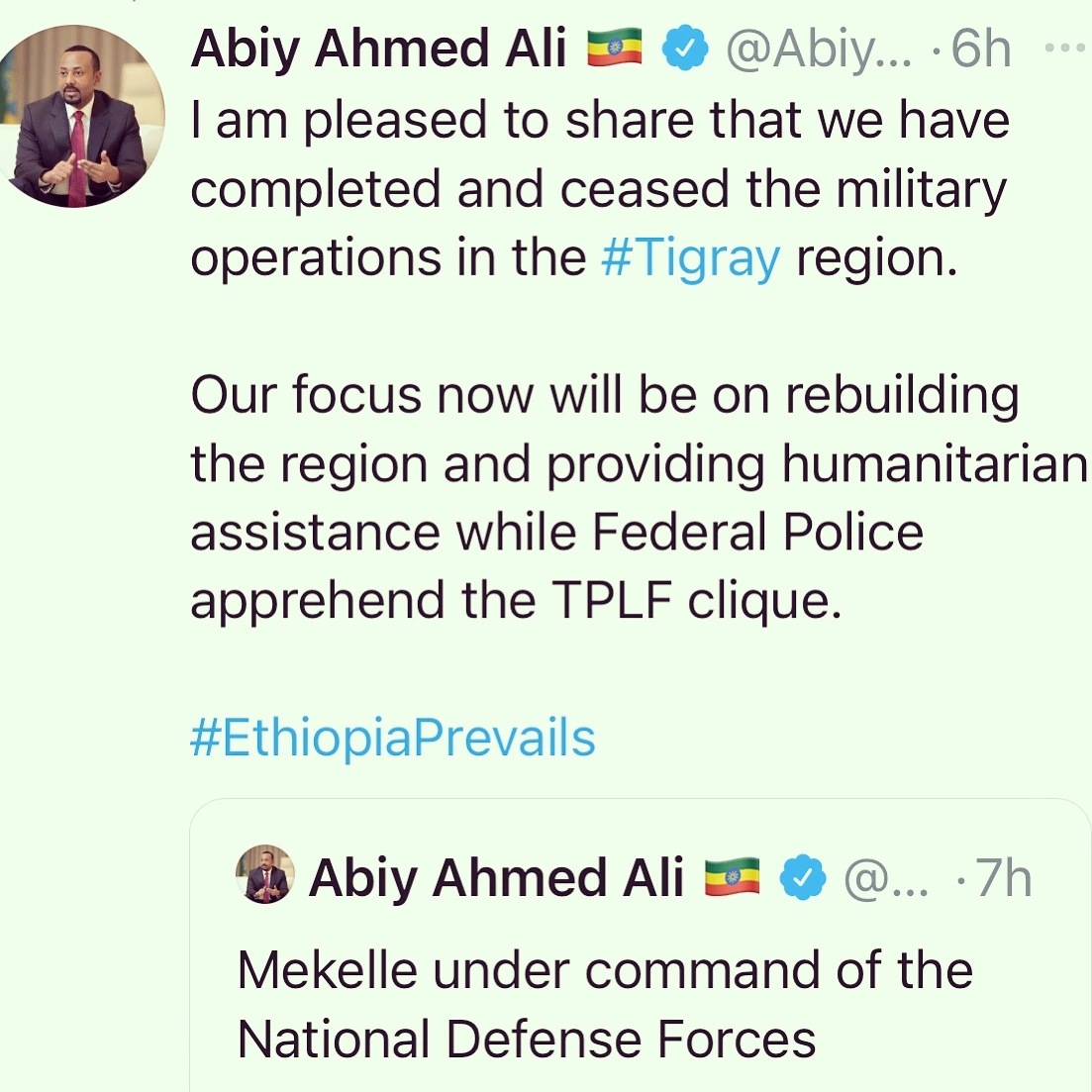 티그라이인민해방전선(TPLF)과 거의 한달간 교전중이었던 에티오피아 연방군이 티그라이주 수도 메켈레를 진압했다는 소식입니다. 문제는 이게 끝이 아니라는 거죠. 아비 수상은 AU(아프리카연합)의 중재 제안도 거절했는데 군사충돌이 어떤식으로 마무리가 될지 많이 우려스러운 상황입니다. 바티칸의 프란치스코 교황도 에티오피아 북부 내전상황과 관련해 평화기원 메시지를 내셨습니다. 지금으로서 에티오피아 바깥에 있는 사람의 최선이란 에티오피아의 평화와 안녕을 기원하는 일 밖에 없어 보여 많이 안타깝습니다. #에티오피아 #에티오피아내전 #에티오피아무력충돌 #티그라이주 #TPLF #메켈레 #에티오피아커피클럽