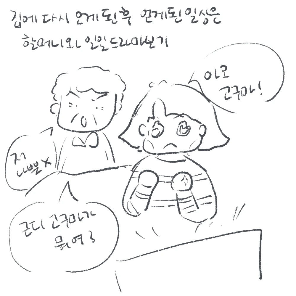막장드라마라 하더라도, 평일, 주말 저녁 시간을 도맡아주던 드라마가 끝났다. 드라마가 끝나면 쉴 틈 없이 새로운 드라마가 등장한다. 일일드라마는 보다 보면 다 아는 얼굴들이 등장하지만, 새로운 줄거리와 등장인물들에 정을 붙이는 시간이 필요하다. 할머니한테도 유독 이번에 보던 드라마가 한꺼번에 끝난 것 같아 “드라마 보던 거 다 끝나서 아쉽지?” 하니, “새로운 드라마도 자꾸자꾸 보다 보면 재밌어져” 하신다.