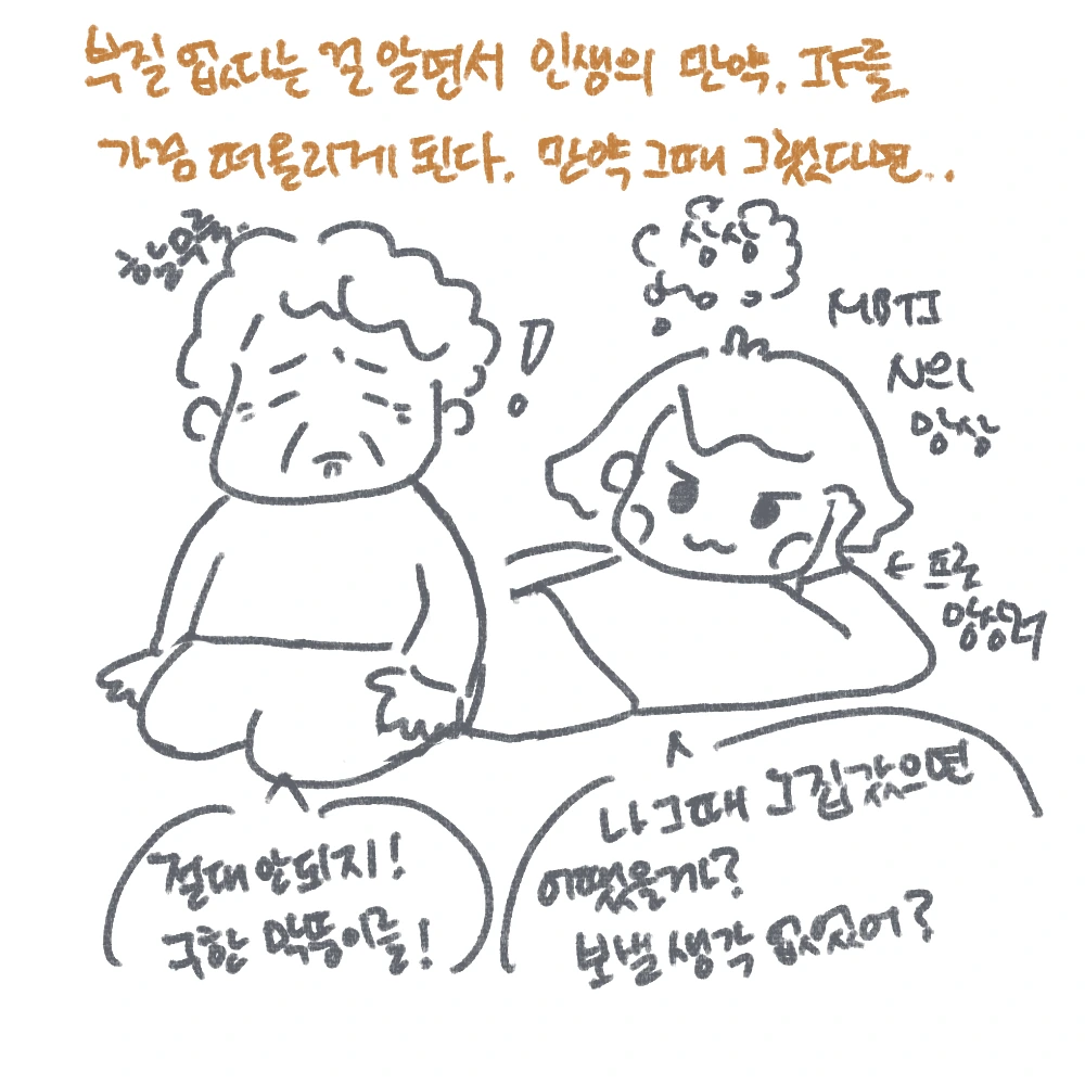 인생에는 여러 전환점과 선택들이 있다. 수많은 인생의 if들.. 만약 내가 그 집의 딸로 입양되었다면 내 인생이 어떤 방향으로 흘러갔을까 가끔 상상한다. (참고로 mbti 확신의 N이다.) 할머니께도 “그때 할매는 나 보낼 생각 없었어?”하니까 말도 안 될 소리라며, 갑자기 슬픈 표정을 지으셨다. 귀한 손녀딸을 보낸다는 상상만으로도 슬퍼지신 것.