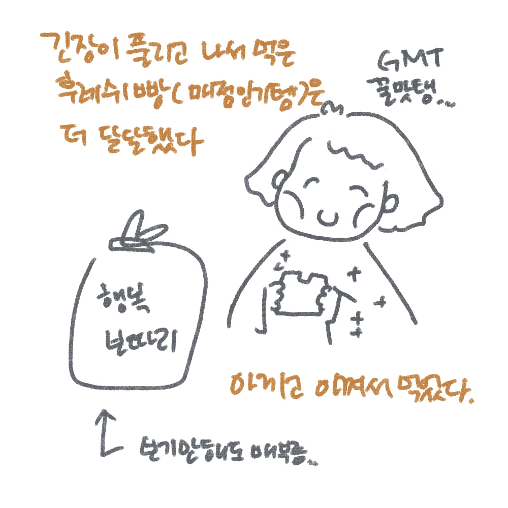 그리고 마지막 작별 인사를 마치고 나서야 안심하며 사주신 빵을 맛있게 먹을 수 있었다.