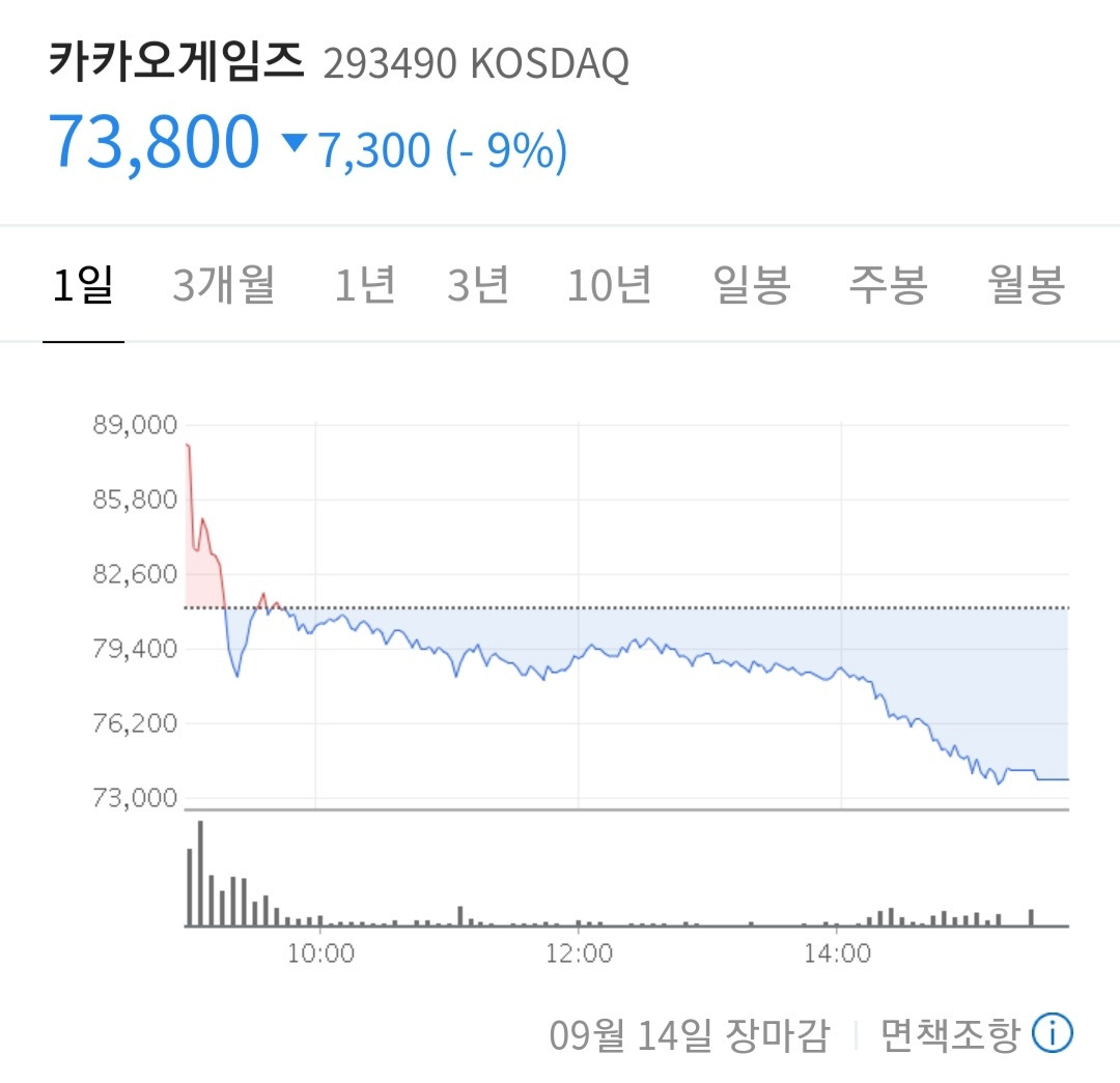 저는 오늘 아침 아홉 시 반쯤 80,300원에 전량 매도했어요.