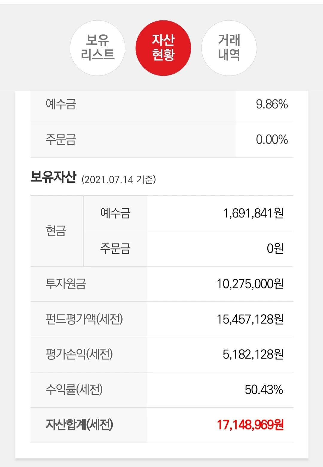 메리츠자산운용과 행복했어요. 차이나펀드 70% 수익율 샐러리맨펀드 30%수익율 합산 수익율50%정도로 잘 마무리했습니다. 매일 자동이체가 중단되어, 안타깝지만 계좌 이전을 결심했어요!