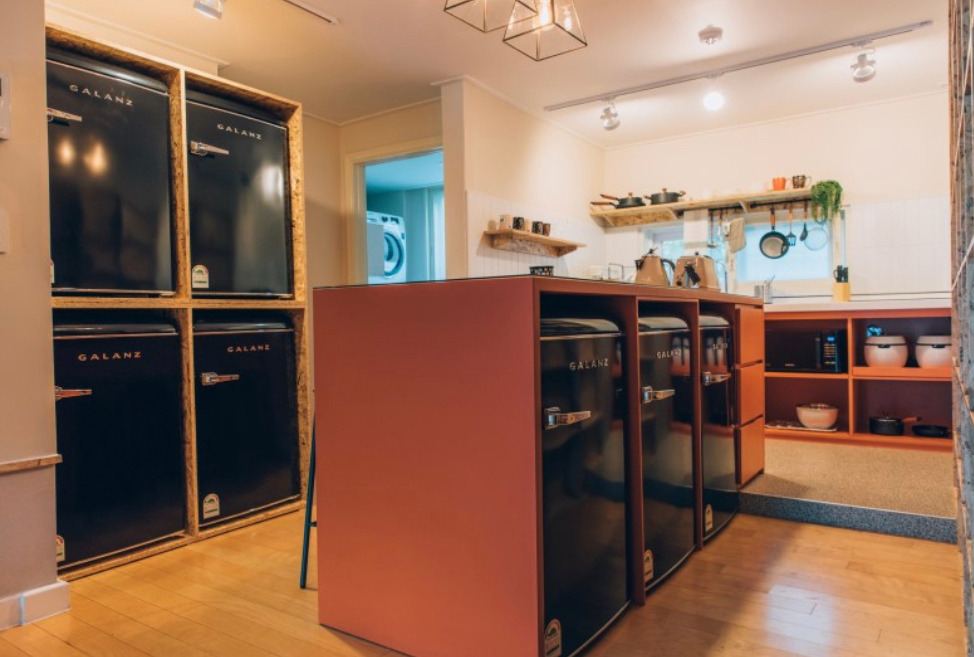주방은 어떠한 다른 공간보다 생활용품이 차지하는 비중이 높고 구비하는 조건에 따라 라이프 퀄리티가 크게 크게 달라질 수 있습니다. 하나하나 확인해 보겠습니다. 주방에서 가장 빈번히 사용하는 가전은 냉장고 입니다. 코리빙을 위해서는 개인 냉장고를 구비하는 것이 가장 이상적 입니다. 그러나 공간이 마땅치 않을 때는 일반 냉장고를 공용으로 사용해도 괜찮습니다. 간혹 남의 음식에 손을 대는 경우를 들어 코리빙을 폄하 하기도 하지만 대부분은 기본적인 신뢰관계가 형성되어 있기 때문에 그런 경우는 발생하지 않습니다. 다만 수십 명이 거주하고 주방을 공유하여 만에 하나 어떤 일이 발생할지 모르는 경우에는 개별 냉장고가 있는 공간에 CCTV를 설치해 놓습니다. 이렇게 하면 서로가 오해 없이 더 편한 관계가 됩니다. 냉장고는 개인적인 용도임에도 불구하고 공용공간에 있기 때문에 이런 주의사항이 생기는 것 입니다. 그래서 차라리 호텔처럼 개인 냉장고를 룸에 비치하는 경우도 있습니다. 이 경우 소음 처리를 위해 냉장고를 싸는 제작 가구가 필요 합니다. 김치 냉장고는 굳이 필요 없으나 꼭 김치만 저장하는 공간이 아니라 다양하게 활용될 수 있으니 요리 등에 특화된 컨셉을 생각한다면 구비하는 것이 좋습니다.