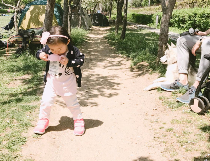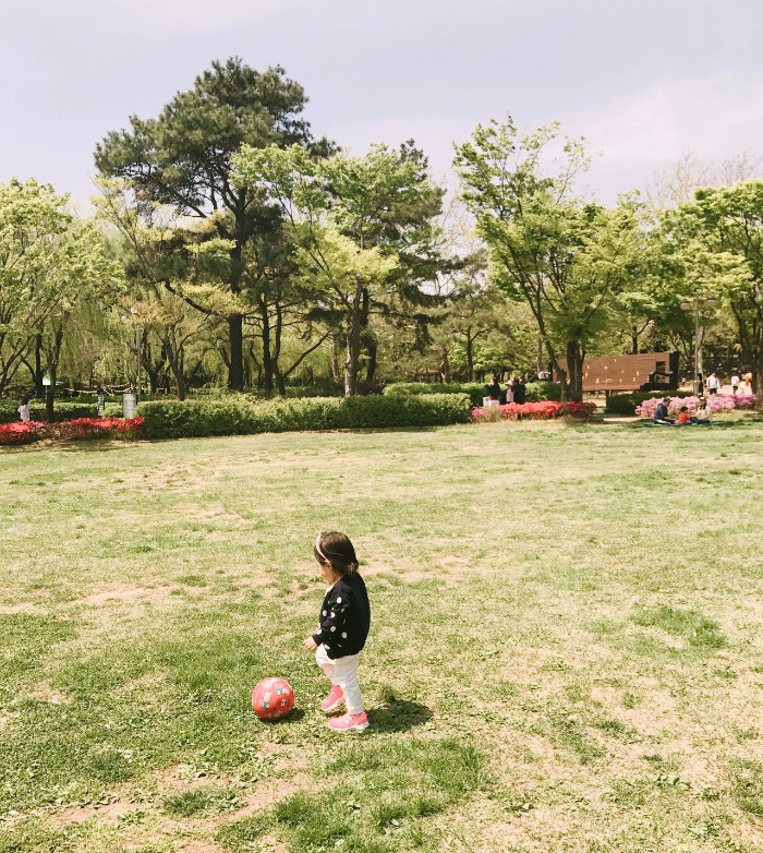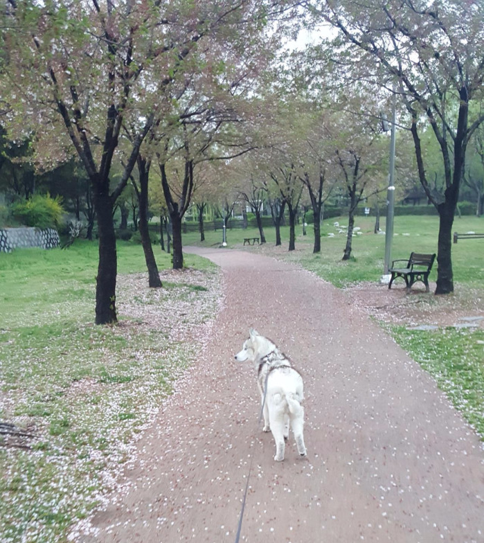 아이용 마스크를 준비하고 반려견 전용 마스크를 준비하고 싶어도, 끝없이 헤어밴드나 머리핀을 집어던지는 햇살이에게도, 끊임없이 냄새를 맡고 더운 날일수록 혀를 길게 늘어뜨려야 하는 제노에게도 현실성 있는 방안은 아니다. 따라서 우리는 날이 좋으면 무조건 급 준비와 함께 외출, 최소한 두어 시간을 뛰놀다가 아이들이 지쳐 더 이상 놀 수 없다는 기색을 보이기 시작하면 귀가한다. 한 주 동안 가장 즐거운 시간이자 기다려지는 시간이다.