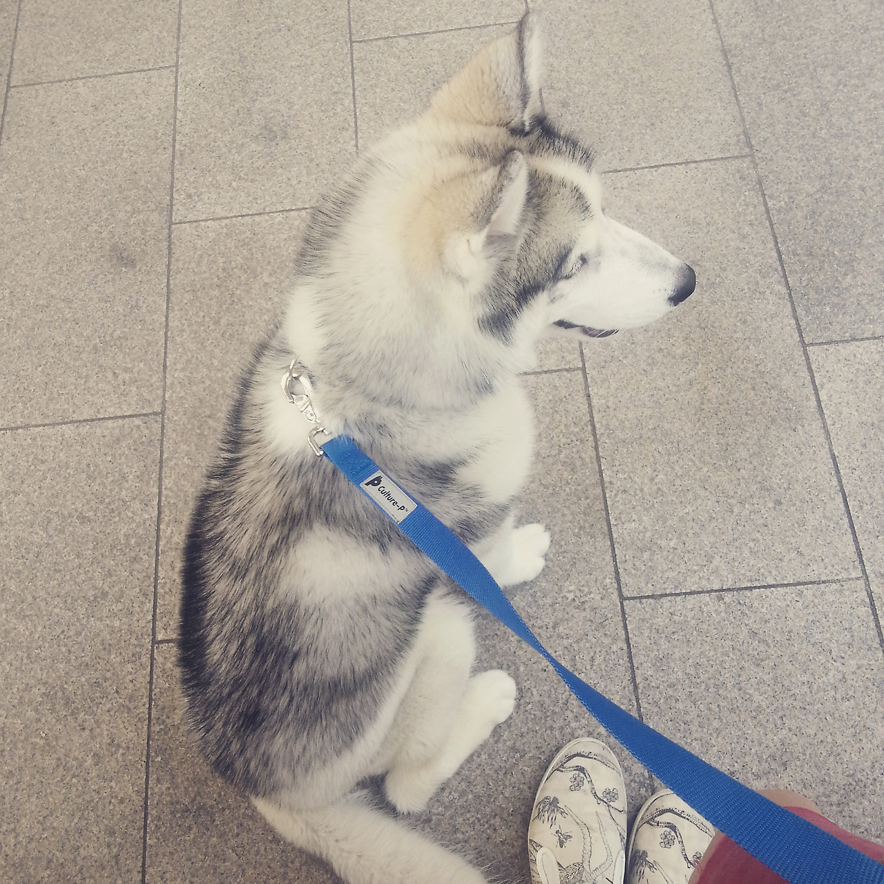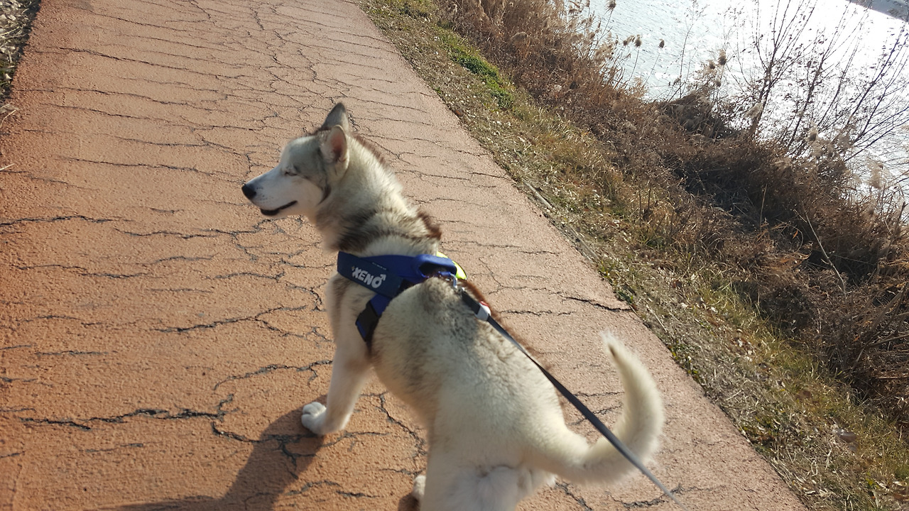 시베리안 허스키의 경우 이유 불문하고 재질이 두껍고, 고리가 견고한 리드 줄을 사용해야 한다. 일반적으로 시중에서 쉽게 구할 수 있는 얇은 리드 줄과 새끼손가락만 한 고리로는 절대 튀어나가는 허스키를 통제할 수 없다. 제노는 생후 4개월부터 얇은 목줄을 일주일에 한 개씩 끊었다. 끊었다는 표현보다는 녀석의 힘을 견디지 못해 고리의 스프링이 터져나갔었다. 손에 쥐기 편한 그립이 제대로 구성되어 있는지, 목줄이나 하네스에 연결되는 고리가 충분히 크고 견고한지 꼭 확인하고 구매하도록 하자. 사진에 나온 제노가 사용하는 리드 줄은 1.8m 길이의 리드 줄로, 사실 어디서 샀는지는 잘 기억이 나지 않는다.
