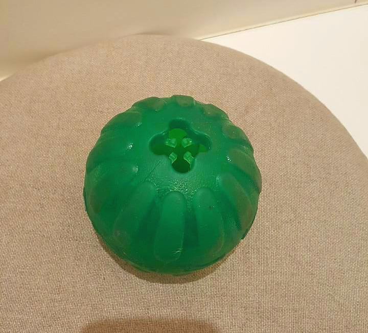 아주 튼튼한 고무 재질로 된 공으로서 제노의 경우 M, L 사이즈 중 라지 사이즈를 가지고 논다. 튀기거나 던져보면 거의 탱탱볼에 가까운 탄력을 가지고 있으며 아주 튼튼하고 잘 굴러다녀서 일반적인 고무공들보다 반려견을 운동시키기에 훨씬 적합하다. 아무리 이빨이 단단해도 자국조차 내기 힘들고 워낙 잘 튀어 오르다 보니 반려견의 체력을 소모시키는 데 가장 이상적인 형태의 공이다. M 사이즈는 테니스공보다 조금 작아서 대형견에게는 적합하지 않으며, L 사이즈는 커다란 배만 한 사이즈라고 보면 된다. 무게감도 상당한 편이며 가운데 난 구멍으로는 간식을 쉽게 넣을 수 있게 되어있어 반려견이 지속적으로 공에 흥미를 가지고 쫓아가도록 돕는다. 넣어둔 간식은 지나치게 작은 덩어리가 아닌 이상 어지간해서는 빠져나오지 않는다. 사실 개가 스스로 간식을 꺼내 먹는 것이 거의 불가능한 구조다.