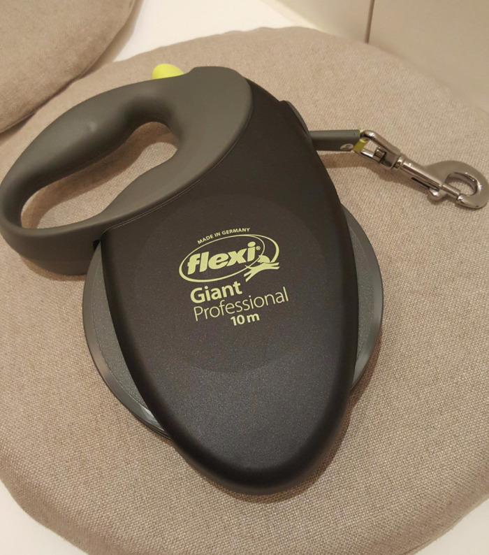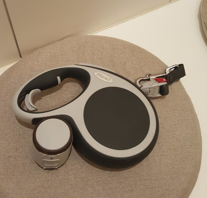 플렉시(Flexi) 사에서 나오는 바리오(Vario) 모델 Large 사이즈(50kg 견종까지), 8m 길이, 테이프형을 사용하고 있다. 처음에 리드 줄만 이용하다가 제노의 힘에 손가락 관절, 팔꿈치, 어깨에 이어 허리와 무릎까지 쑤시기 시작해서 자동 리드 줄로 넘어왔다. 당시 제노의 체중은 약 19kg이었고 시베리안 허스키 수컷 성견의 평균 체중은 23~27kg 정도여서 돈도 아낄 겸 Medium 사이즈(25kg 견종까지), 5m 길이를 구매했었다. 처음에는 괜찮았는데 제노가 조금 더 커지고 힘이 붙자 M 사이즈 제품은 종종 완전히 콱 풀어져서 자동으로 줄을 감지 못하기 시작했다. 한 마디로 제노가 뛰쳐나가는 순간적인 힘이 너무 강해서 제품이 버티질 못한 것이었다.
