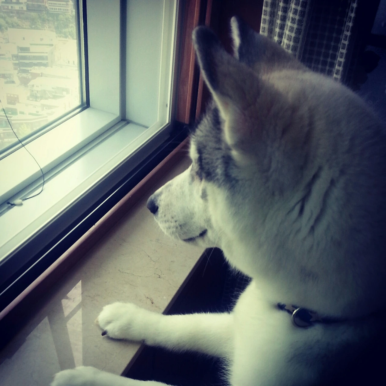 긴 시간 작업에 지쳐 차가운 보리차라도 한 모금 들이켜야겠다는 생각으로 방을 나선다. 문을 열자마자 무언가 달려오는 소리가 들린다. 제노다. "어? 내가 아까 너 안 묶어놨었니?!" 얼마 전 외출한 사이에 어금니로 목줄을 끊어내고 자유를 만끽하던 모습이 생각나 우선 목줄과 리드줄부터 확인한다. 모두 멀쩡하다. 돌이켜보니 작업실로 향하기 전, 목줄을 착용하지 않은 모습이 더 야생 허스키에 가까운 미모를 발산한다면서 전부 풀어뒀던 기억이 난다. 선풍기 앞에서 곤히 자다가 갑자기 아빠가 방에서 나오니 쪼르르 달려와 예뻐해 달라며 비벼댄 것이다.