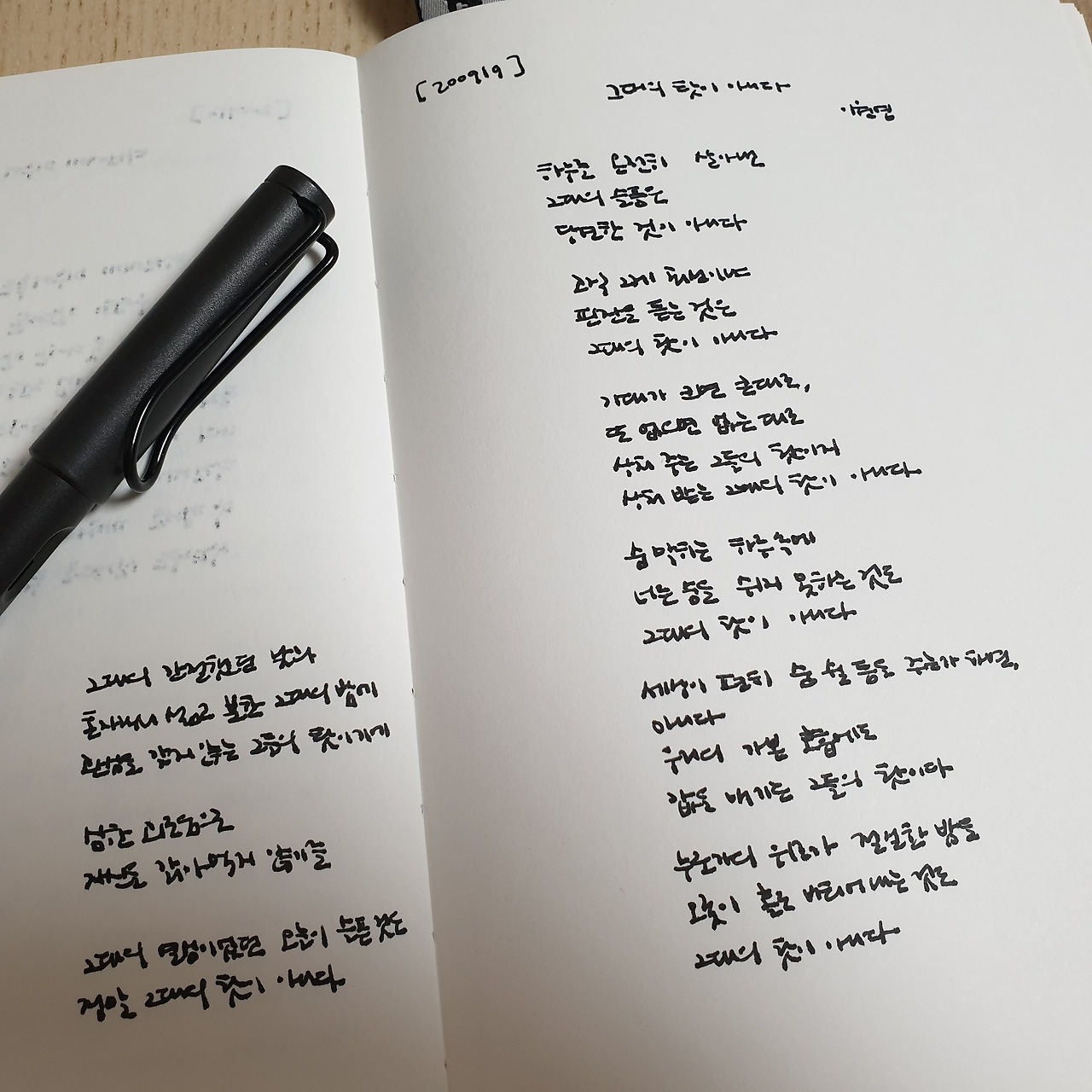 하루를 온전히 살아낸 그대의 슬픔은 당연한 것이 아니다 고작 그게 최선이냐 핀잔을 듣는 것은 그대의 탓이 아니다 기대가 크면 큰대로, 또 없으면 없는 대로 상처 주는 그들의 탓이지 상처받는 그대의 탓이 아니다 숨 막히는 하루 속에 너른 숨을 쉬지 못하는 것도 그대의 탓이 아니다 세상이 편히 숨 쉴 틈을 주는가 하면, 아니다 우리의 가쁜 호흡에도 값을 매기는 그들의 탓이다 누군가의 위로가 절실한 밤을 오롯이 홀로 버티어내는 것도 그대의 탓이 아니다 그대의 간절했던 낮과 혼자라서 섦고 분한 그대의 밤에 관심 갖지 않는 그들의 탓이기에 심한 괴로움으로 자신을 갉아먹지 않기를 그대의 열심이었던 오늘이 슬픈 것은 정말 그대의 탓이 아니다