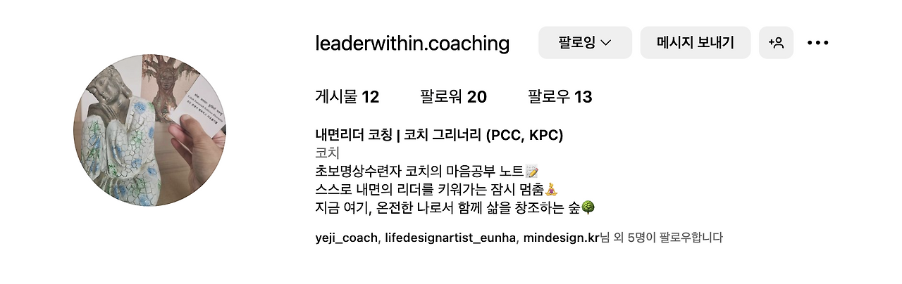 7주차의 과제가 인스타그램 계정을 프로페셔널 계정으로 전환하고 3개의 게시물과 1개의 릴스를 만들어 올리는 것이었다. 3월 23일, 명상 수업에 참여하다가 그래 만들어 보자! 라는 마음이 올라왔고 빠르게 계정을 만들었다.