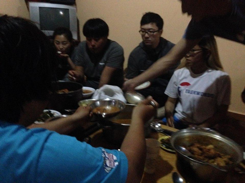 다합은 보통 여행자들의 무덤으로 알려져 있다. 흔히 여행자의 무덤으로 알려진 지역들을 보면 하나같이 배산임수의 지형을 띈다. 네팔의 포카라도 그랬고, 파키스탄의 훈자도 (물론 훈자는 마을에서 물을 바로 보기는 쉽지 않지만) 그랬다. 다합은 다른 지역들 보다 더했으면 했지 모자랄 수 없다. 마을 산책을 나서면 한 편에는 흙산을, 다른 한편엔 광활한 바다를 끼고 있으니까. 하지만 다합이 여행자의 무덤이 되는 것은 단순히 자연환경때문마는 아니라는 생각이 들었다. 나의 다합 생활에서 매일 저녁 빠질 수 없던 것이 바로 저녁 식사, 아니 잔치였다. 보들부부 형님, 누나와 같이 생활하고 있지만 그 외에도 같은 아파트에 살던 지훈쌤과 가현누나, 뒤에 합류한 우연이, 오르카 마스터 다이버들까지 많은 날에는 20명에 가까운 사람들이 한 집에 모여 식사를 하고 있는 것을 볼 수 있다. 음식도 단순하지 않다. 기본은 된장찌개요. 양념치킨, 후라이드치킨, 닭볶음탕... 하루종일 한식을 먹으니 그 누구도 여기서 음식 불평하는 사람이 없다. 여행자의 무덤이 달리 이유가 있나! 자연, 풍경 그리고 사람과 함꼐하는 시간이 그 곳을 여행자의 무덤으로 만드는 것이다.