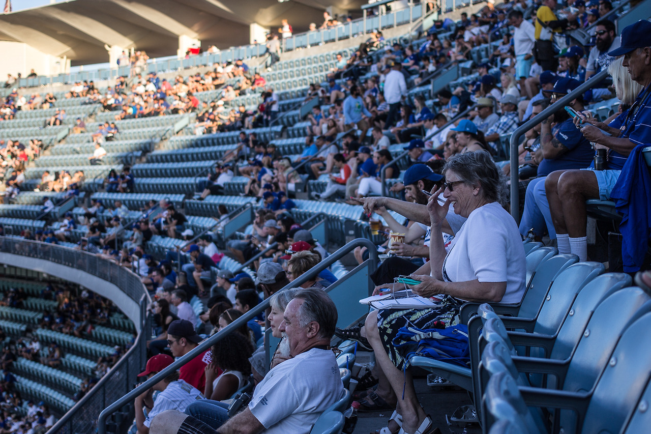 미국 문화에서 또 빠질 수 없는 것이 스포츠다. 가장 유명한 스포츠가 무엇일까에 갑론을박이 나올 수는 있지만, 공전의 히트를 친 스포츠 산업이 무어냐고 물어보면 야구가 빠지지는 않을 것이다. 그 중에서도 LA는 자국 1부리그인 MLB에서도 손꼽히는 실력을 가진 LA다져스(LA Dodgers)를 보유하고 있다. 전통있는 팀이기도 하지만 우리나라 사람들에게는 박찬호 선수와 류현진 선수의 소속 팀으로 알려져 있다. 아무튼, 여유 시간도 있고 해서 미국의 야구 경기를 한 번은 보고 싶어서 티켓을 예매하고 다져스 스타디움으로 야구 관람을 하러 갔다. 좌석의 종류와 임박 시기에 따라 가격은 천차만별이지만 나는 가장 저렴한 좌석에서 세금 포함 $6을 내고 관람했다.