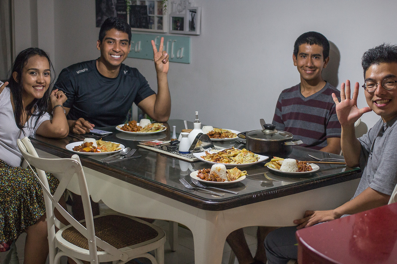그날의 한식은 그걸로 끝이 아니었다. 우리에게 칼리 여행의 소중한 시간을 선물해 준 칼리의 호스트 Carlos 부부에게 한식을 대접하기로 했기 때문. 과테말라에서 시도했던 제육볶음과 채소전으로 한 끼를 했는데, 우꾼의 채소전은 아주 강력했으며 나의 제육볶음은 남편 Carlos의 큰 사랑과 매움의 고통에 모두가 눈물을 흘려야 했다(너희들이 먹는 피칸테보다 덜 매운 거 같은데...).