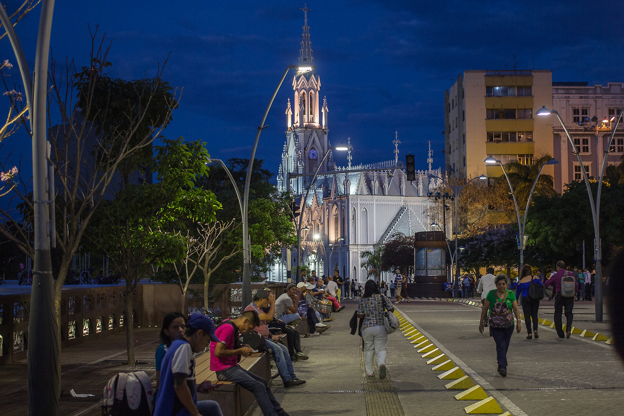 먼저 향한 곳은 칼리의 다운타운인 불러바드(Boulevard, 가로수가 양옆으로 들어선 넓은 도로)였다. 처음에 '불러바드'를 잘못 들어서 남미의 영웅이라 불리는 '볼리바르'로 들었는데, 막상 가보니 말 그대로 큰 도로였다. 시청과 오래된 교회들이 이 도로 근처에 밀집해 있으며, 저렴한 레스토랑과 노점상들이 있어서 많은 사람들이 외식도 하고 술 한잔 걸치면서 흥겹게 노는 거리라고 한다. 우리가 갔을 때도 몇 가게에서 노래를 크게 틀어 놓고 사람들이 먹고 마시면서 즐거운 시간을 보내고 있었다. 가로수 중간중간에는 고양이 동상이 있는데, 시내 한편의 고양이 박물관 쪽에서 만든 것이라고 했는데, 그것은 다음 날 가보기로 한다.