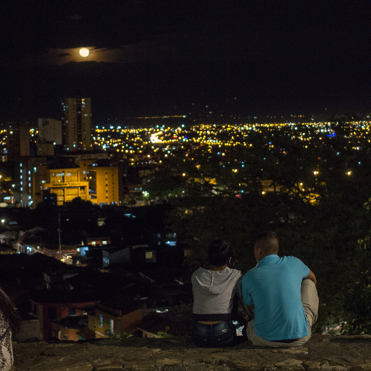 호스트는 우리를 데리고 산 안토니오 언덕으로 데려갔다. 다른 포인트로 간다길래 내심 '또 어딜 데려가는 거지'싶기도 했는데, 우리보다 열정이 넘치는 호스트는 '칼리의 전경을 볼 수 있는 아름다운 곳'이라며 우리를 데려갔다. 사실 칼리는 잘 개발된 도시기에 보고타에서 보는 전경과 무엇이 다를까 싶었는데, 근본적으로 다른 관점에서 전경을 볼 수 있었다. 바로 월출. 보고타는 산으로 둘러싸여 있기 때문에 달이 떠오르는 모습을 보는 것은 쉽지가 않다. 그런데 칼리는 반대로 평지에 산 안토니오 언덕만 뽈록 튀어나온 형태라 달이 지평 선위로 뜨는 걸 볼 수 있다. 우리가 갔던 날은 구름이 많아 구름 아래에서 달이 올라가는 모습을 볼 수 있었다! 월출이라니!