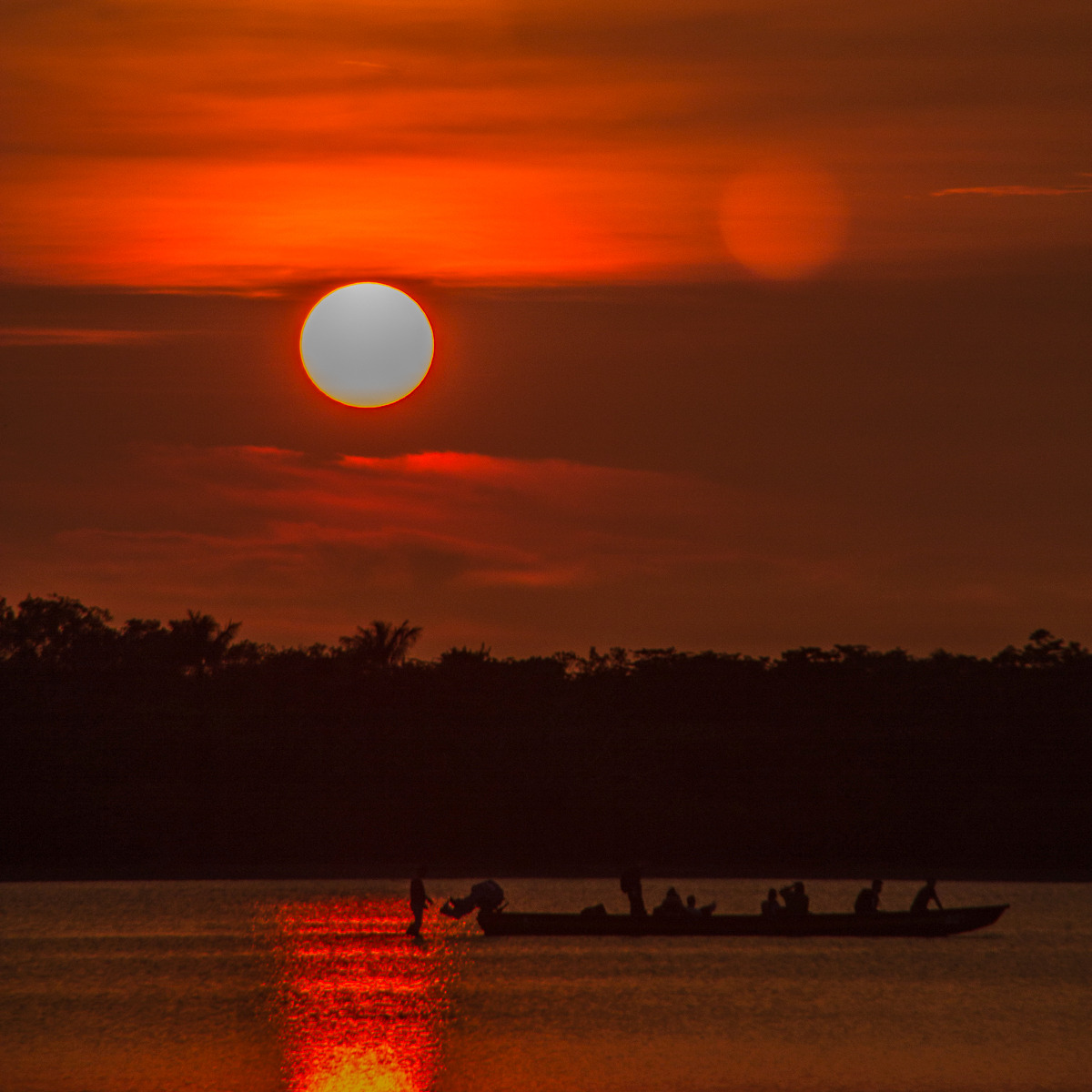 아마존에서 지내는 동안 가장 좋을 때가 언제냐고 누가 나에게 묻는다면, 무조건 일몰시간을 꼽을 것 같다. 에콰도르의 위도가 적도 근방이기 때문에 해가 뜨고 지는 시간이 늘 일정하다. 6시에 해가 뜨고 6시에 해가 지는, 낮과 밤이 동일한 공간. 늘 배를 타고 가다가 동일한 포인트(약간의 차이는 있지만)에서 일몰을 보게 된다.