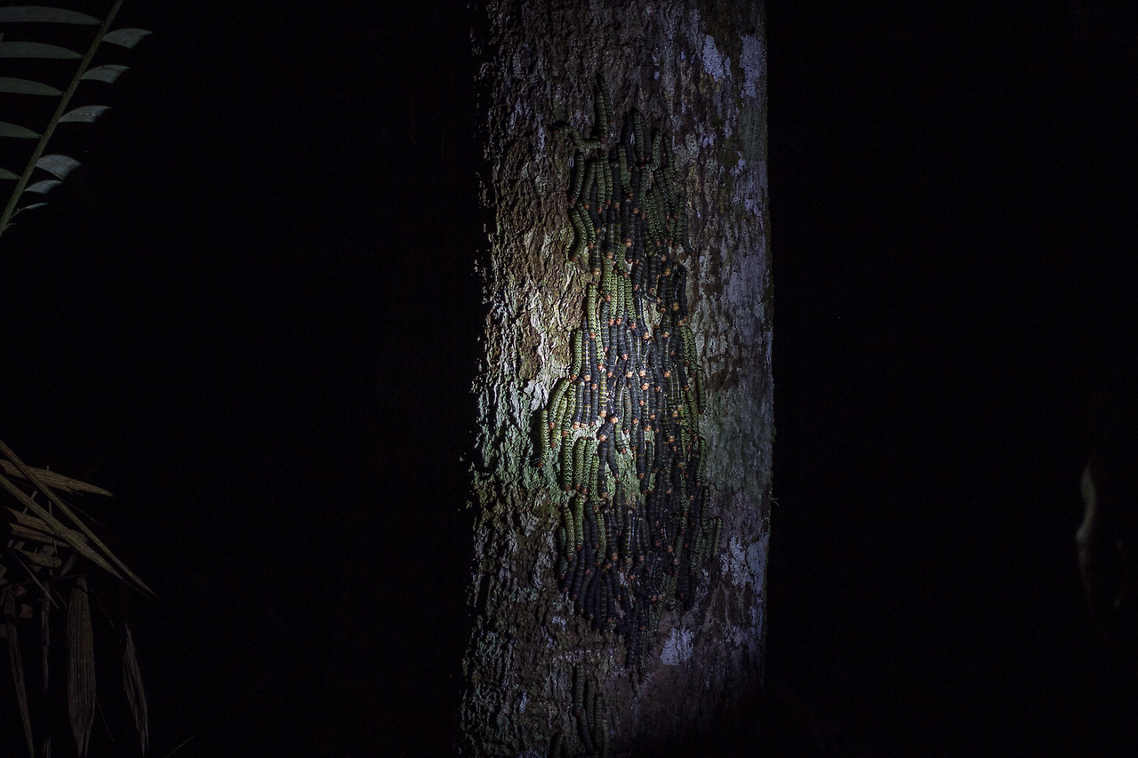 일부 새소리가 들리지만 밤의 아마존을 지배하는 것은 곤충이나 양서류, 파충류인 것이다. 예능프로그램에서 볼 법한 곤충들이 튀어나오고, 의식하지 못하다가 빛을 비추면 나타나는 거미나 큰 곤충들에 몇 번씩을 화들짝 놀라게 된다. 벌레를 정말 싫어하는 나로서는 밤 탐사는 그렇게 유쾌하지는 않았다. 실수로라도 나무를 만졌다면 송충이들과 단체로 하이파이브하는 격이었을 테니.