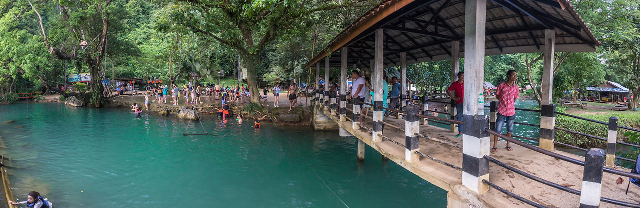 혹자들은 무릉도원이 따로 없다고들 하는데 그것까지는 모르겠다. 개인적으로는 루앙프라방 탓새 폭포가 더 아름답기는 했다. 대신 여기는 즐길 거리들이 몇 개 있는데, 제일 대표적인 것은 역시 나무 위에서 뛰어내리는 다이빙! 나도 다섯 번 정도 시도했는데 몇 번을 시도해도 떨리기는 마찬가지...