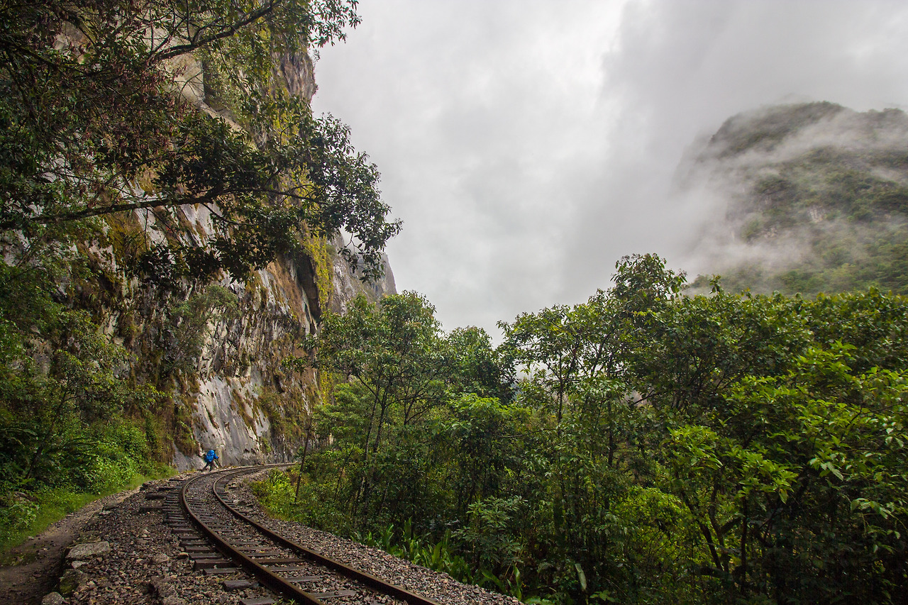 두 번이나 멍 때리면서 마추픽추의 비경을 보았더니 입장권 유효시간도 거의 끝나갔으며 차로 돌아가기까지 남은 시간도 얼마 남지 않았다. 입장권은 12시까지 유효했으며, 나는 반드시 처음 버스를 타고 내렸던 하이드로 일렉트리카까지 오후 2시 45분까지 돌아가야 했는데 벌써 11시 40분이었으니까. 서둘러 마추픽추 시티를 나갔다. '올라갈 때 산을 내려온 게 55분이었으니, 30분 정도면 내려갈 것이며 여기가 아후 아스 칼리엔테 보다는 하이드로 일렉트리카까지 거리가 조금 더 가까우니 2시간이 안 걸리게 갈 수 있으니 늦지 않고 복귀가 가능하다!'라는 계산을 마치고는 미친 듯이 산을 뛰어 내려갔다. 한때 소래산 날다람쥐로 불리던 내가 관악산 정도의 산을 내려가는 것은 일도 아니었다. 내려가는 것은 올라갈 때처럼 천천히가 아니라 엄청나게 빠른 속도로 뛰었다. 나보다 훨씬 먼저 출발하던 사람들을 이십 명이상 제치면서 갔으니까. 올라왔을 때의 산의 풍경을 기억하며, 이쯤이면 절반이니 속도를 더 내 볼까 라고 생각하는 순간, 우지끈. 발목이 꺾였다. 순간적으로 정말 여행하면서 낼 수 있는 가장 큰 고함을 친 것 같았다. 처음엔 발이 부러진 줄 알았다. 잠시 후 걸어지기는 하는 것을 보고 일단 내려갔다. 속도가 올라갈 때보다 몇 배는 느려져 버렸다. 하필이면 꺾인 발은 콜롬비아에서 한 번 삐었던 오른발이었다. 힘들게 산을 내려와서 기찻길을 걷는데 도저히 속도가 나질 않았다.