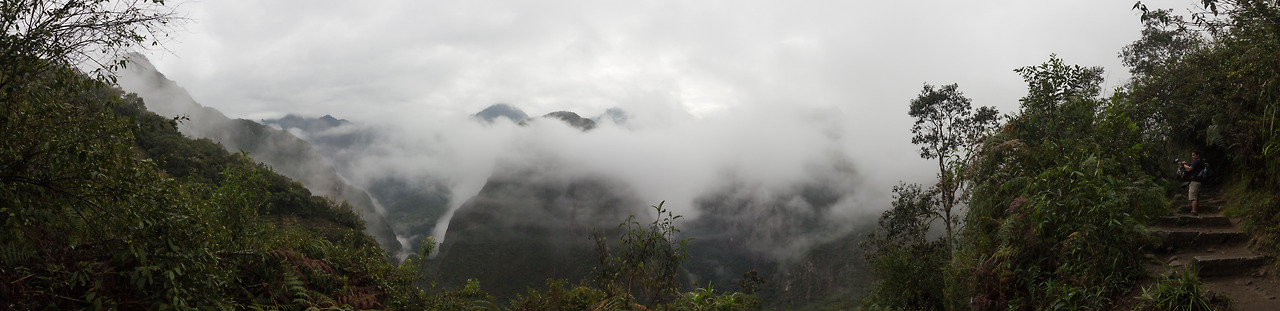 버스는 완만한 길로 구불구불하게 올라가지만 사람이 올라가는 길은 흡사 관악산을 생각나게 하는 난이도. 산타는 것에 꽤 이력이 있는 나인데도 중간중간 힘들었다. 보통은 한 시간 20분에서 한 시간 반 정도 걸린다는 코스였지만 불굴의 의지로 55분에 올라갈 수 있었다. 올라간 마추픽추 입구에는 새벽 이른 시간임에도 많은 사람들이 줄을 서고 있었다. 꽤 긴 시간을 줄을 서 입장한 그곳에는 안개가 펼쳐졌다. 아니 의사 양반 이게 무슨 소리란 말이오. 안 그래도 그 전날부터 날씨가 심상치 않았다. 어제 기찻길을 따라 걸을 때도 구름이 짙게 껴 비가 내리기도 했었으니까. 그래도 이건 좀 너무했다 생각이 들었다.
