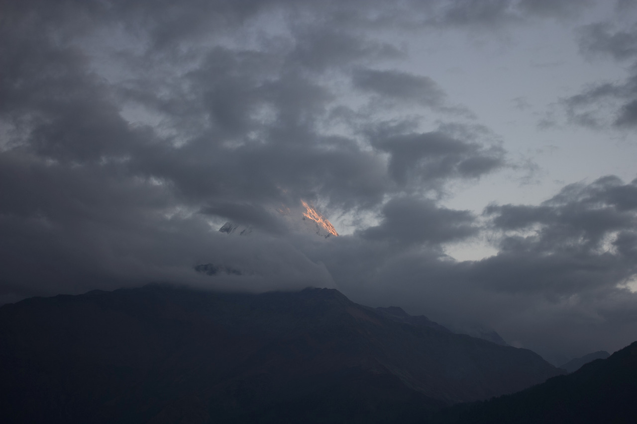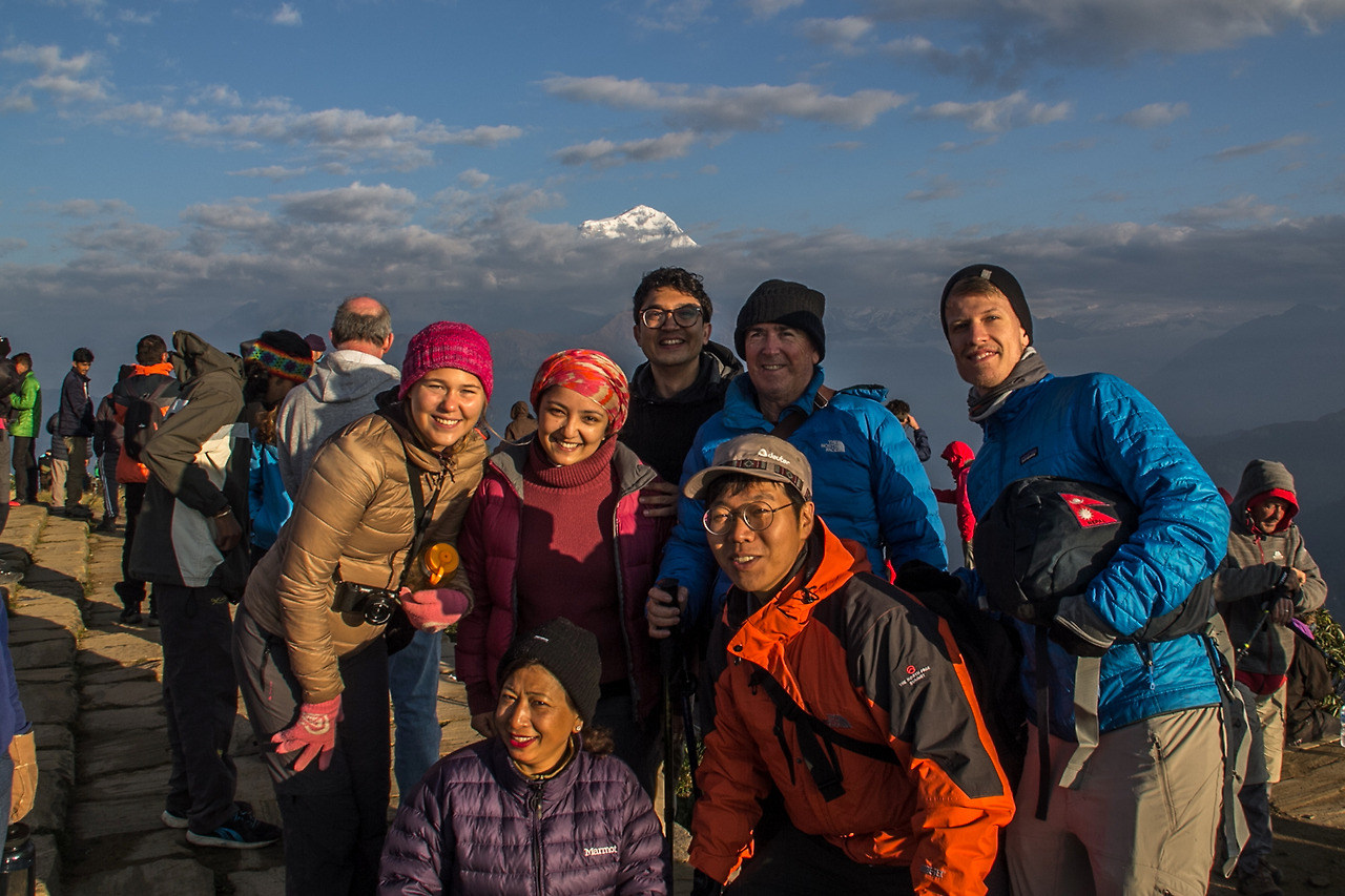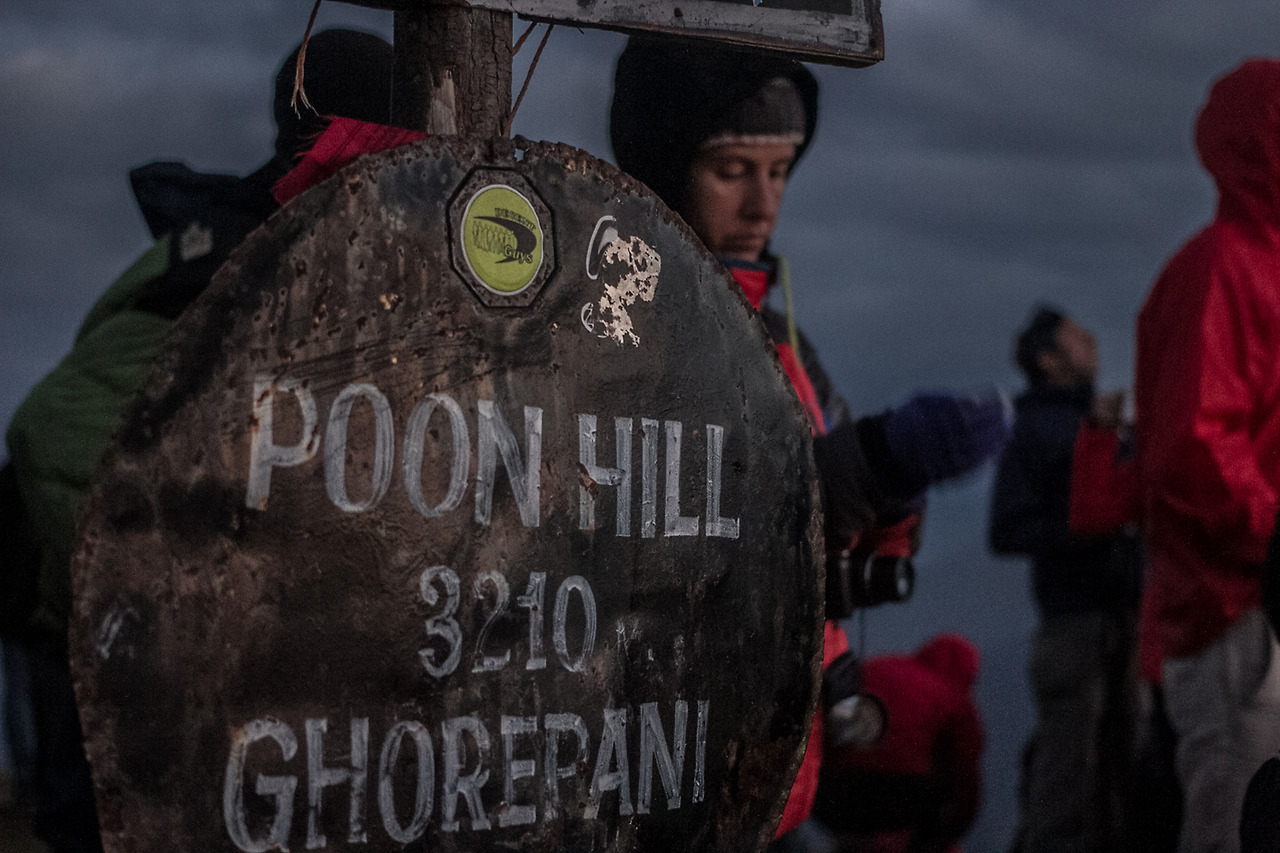 Sofhie와 Thor는 4시 반이 되어 일어났다. 일출시간이 6시 10분이었기 때문에 서둘러 푼힐 전망대로의 아침 산행을 시작한다. 푼힐까지는 약 한 시간이 걸리는데, 여기부터는 해발고도가 3000m에 육박하므로 아침과 저녁에는 싸늘한 초겨울 날씨에 가까워 재킷에 내피까지 입고 나왔다. 날씨만큼이나 어려운 것은 시야였다. 모든 사람들이 헤드랜턴을 갖고 와도 보이지 않는 산을 오르는 것은 쉬운 일이 아니다. 게다가 나는 헤드랜턴이 없었다. 한참을 헉헉대며 올라간 푼힐 전망대 앞에서는 50 NPR의 입장료를 받는다. 여기서 부터도 한 20~30분은 더 올라야 한다. 겨우 올라간 전망대. 하지만 아직 해가 보이지 않았다. 해가 떠오르는 쪽 왼편이 안나푸르나 산군인데 구름이 잔뜩 껴서 아무것도 보이지 않았다.