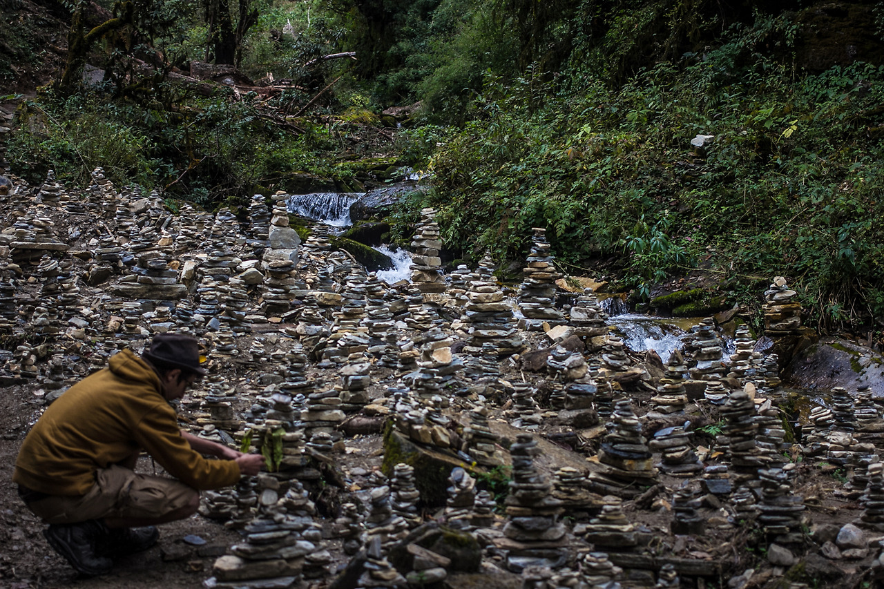 너무 힘들어서 사진 찍을 생각을 못할 정도로 미친 듯이 힘들었다. 숨도 많이 차고, 게다가 고도 상승도 엄청나서 많은 사람들이 정말 천천히 이동한다. 두 번인가 세 번 정도 이런 코스를 반복했던 것 같다. 그러고 나서야 내려가는 숲길이 등장한다. 내려가는 숲길은 폭포도 자주 볼 수 있는데, 그 규모가 엄청나다. 사실 폭포 자체는 우리나라 산에서도 참 많이 볼 수 있는 풍경이라 나는 낯설지 않은데, 서양인들에겐 굉장히 낯선 풍경인 듯. 심지어 소원을 비는 돌탑군에서는 그 풍경에 흠뻑 빠진 모습이었다.