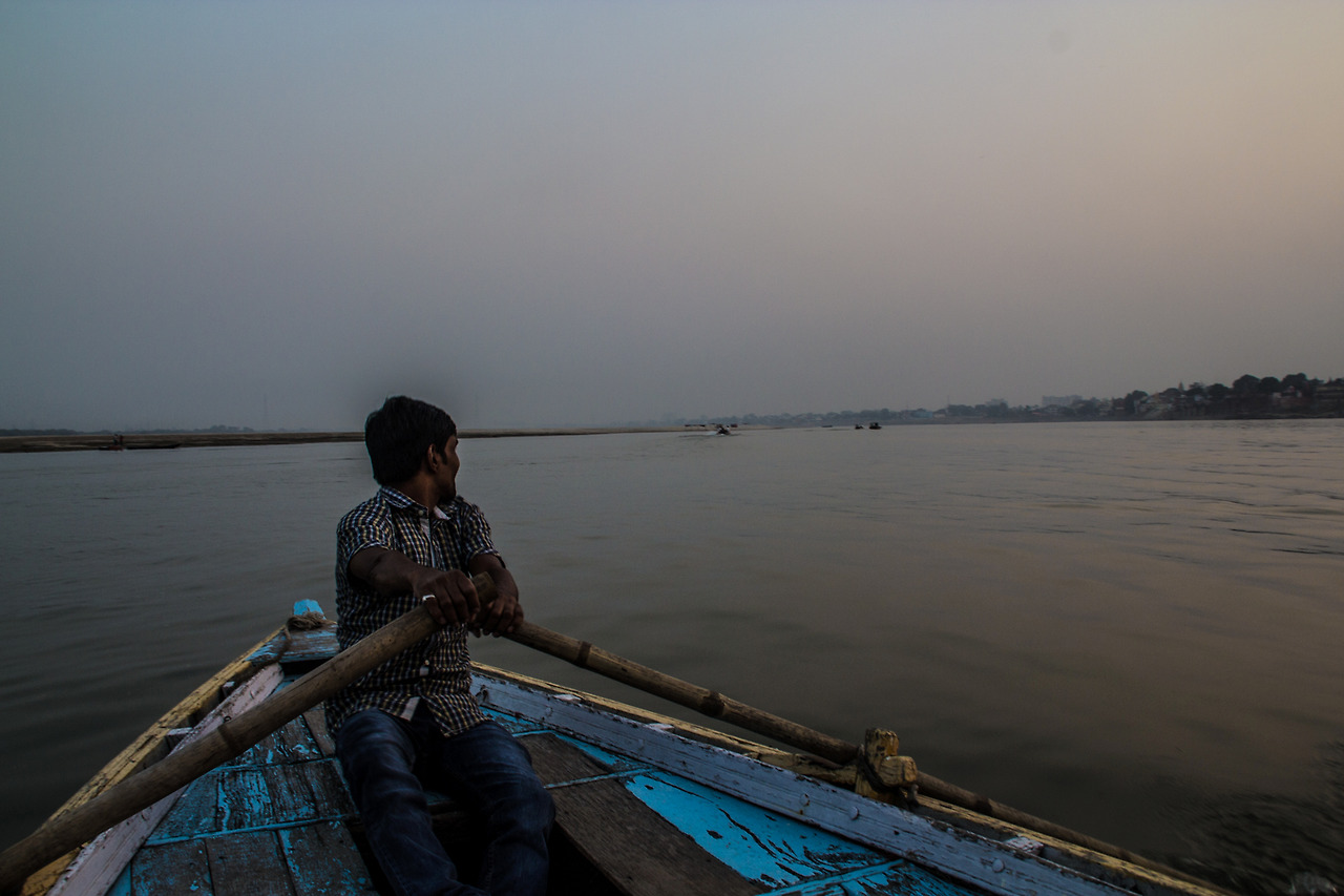 갠지스 강은 해가 강변으로 떠서 바라나시 쪽으로 진다. 응당 일몰은 강 건너에서 봐주는 것이 인지상정. 정확하게 약속은 안 했지만 오늘 저녁에 보트를 함께 타기로 Joanna와 약속했지만 시간 내에 오지 않아 나 혼자 보트를 타게 되었다. 더 저렴한 보트 드라이버들이 많았지만 한국인들이 많이 이용한다는 철수 씨의 보트를 이용해 보기로 했다. 다행히 나 혼자 출발한 것은 아니었고 한국인 부부 한 분이 계셨다. 철수 씨는 우리에게 갠지스 강의 건너편과 함께 이곳저곳을 돌아다니며 문화적, 역사적인 내용들을 설명해 주었다. 모르고 보았을 때보다 알면서 보는 풍경은 더욱 이색적이었다.