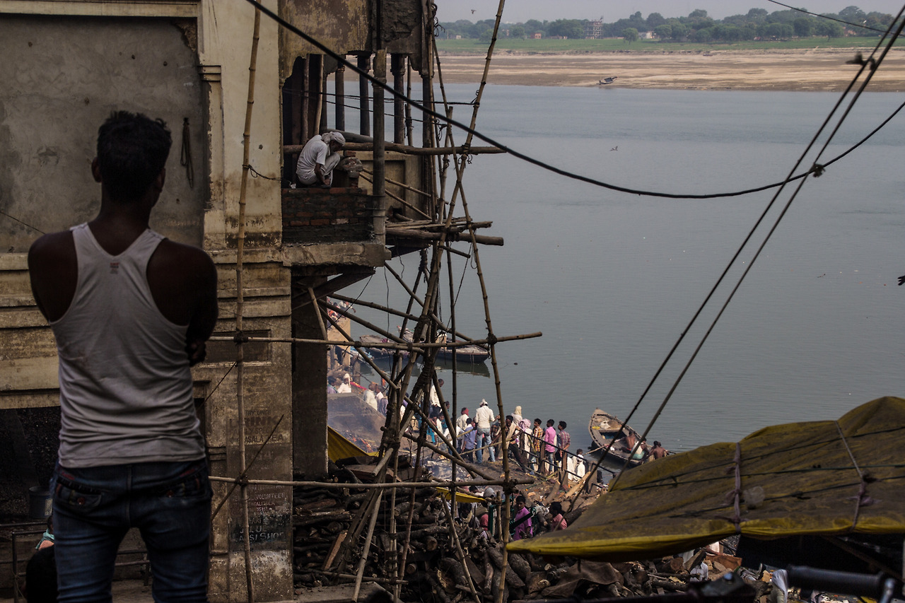 가까이에서는 보고 있는 외국인을 영 좋지 않게 보는 시선도 있고, 굳이 가까이에서 시신이 타오르는 모습을 보고 싶은 마음도 없기에 화장터가 멀리 보이는 곳에서 그 모습을 한 시간 정도 앉아서 멍하니 바라봤던 것 같다. 내가 앉아서 보고 있던 곳에서는 사람들이 배를 만들고, 앉아서 쉬고, 음식을 팔고, 목욕을 하고 있었는데 말이다. 불과 1km도 떨어지지 않은 곳에서 죽은 사람이 물로 가고 있고, 산 사람은 물가에서 생활을 하고 있다.