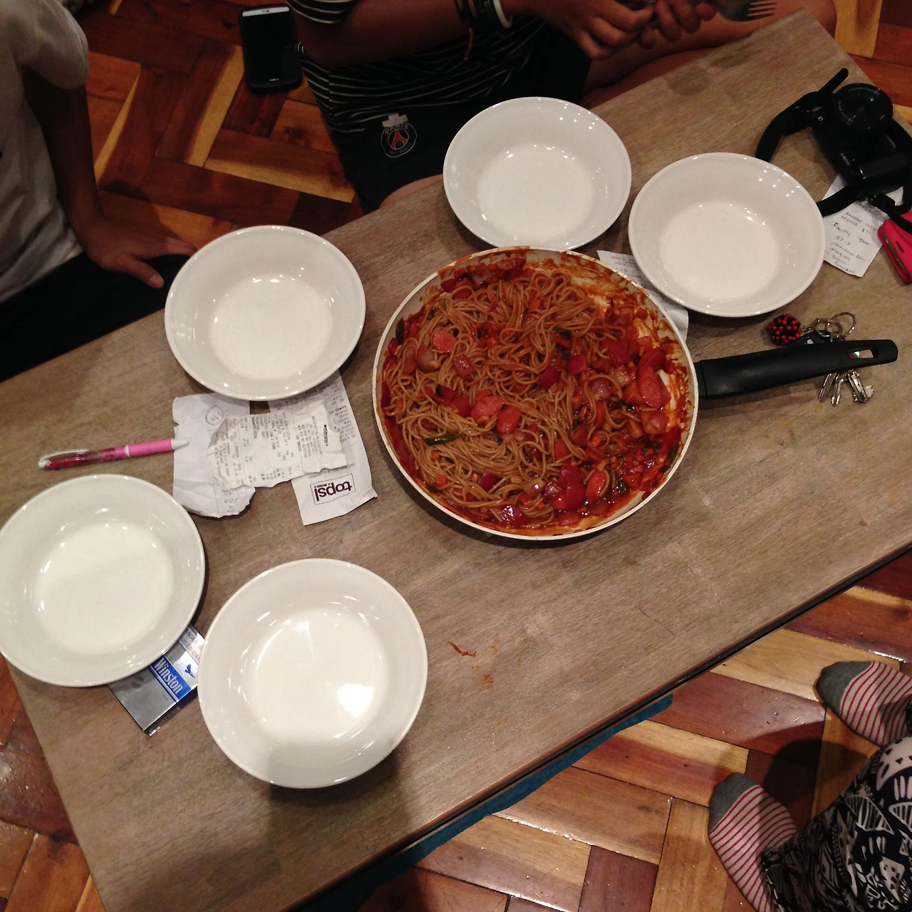 아프리카에서는 혼자가 아닌 사전에 연락했던 다른 여행자들과 함께 다니기로 했었다. 아프리카 커뮤니티를 통해 여행 출발 전부터 연락해오던 탁이를 가장 먼저 만나게 되었다. 내가 머물 던 숙소에는 탁이 외에도 여러 가지 이유로 남아공 케이프타운을 찾아온 여행자들이 있었다. 저녁은 그들과 함께 보내게 되었다. 인도나 파키스탄에서도 오롯이 혼자 보낸 것은 아니지만, 오늘의 여행자들과의 시간은 오랜만에 새로웠다. 저녁을 같이 해 먹기 때문. 물가가 비싼 유럽에서 흔히 하는 모습이지만 3개월간의 아시아 여행에선 그런 풍경을 찾기 힘들었다(직접 해 먹는 것이 사 먹는 것보다 손해니까... 애초에 주방도 잘 없다). 갓 입국해서 장 볼 시간도 없었던 지라 회비 없이 첫날은 얻어먹기만 했는데, 부족한 재료에도 정이 느껴지니 더 맛있었다. 이름도, 나이도, 사는 곳도 생소한 사람들끼리 먹는 여행자들의 식사자리가 오랜만이어서 어색하지만 즐거웠다.