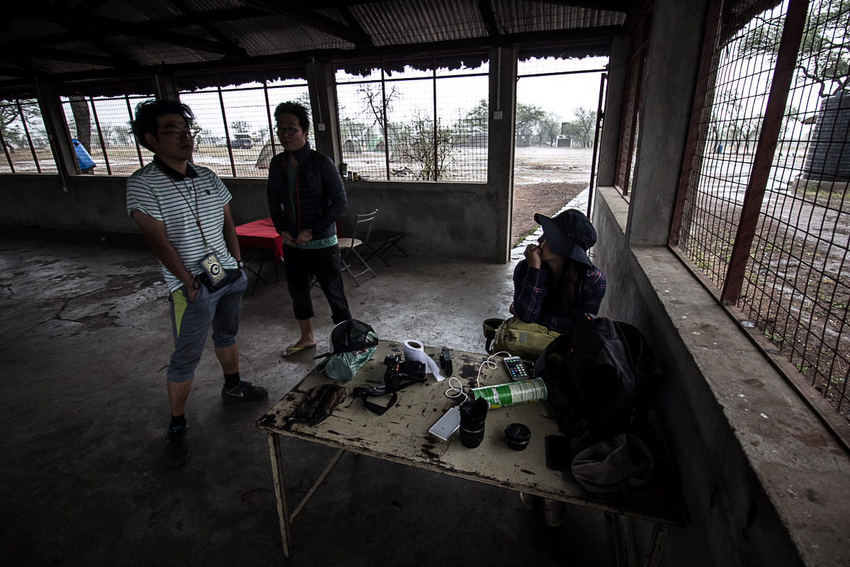 캠핑사이트에 미리 방문하여 잠시 휴식을 취하고 다시 출발하기로 했다. 우리가 쉬는 동안 요리를 담당하는 쿠커와 넬리가 텐트를 쳐놨다. 오늘에 대한 이야기를 나누면서 휴식을 취하고 있는데 갑자기 심상치 않은 소리가 들렸다. 비가 다시 오는 것이었다. 설치된 텐트를 부랴부랴 쿠커와 넬리가 정리하기 시작한다.