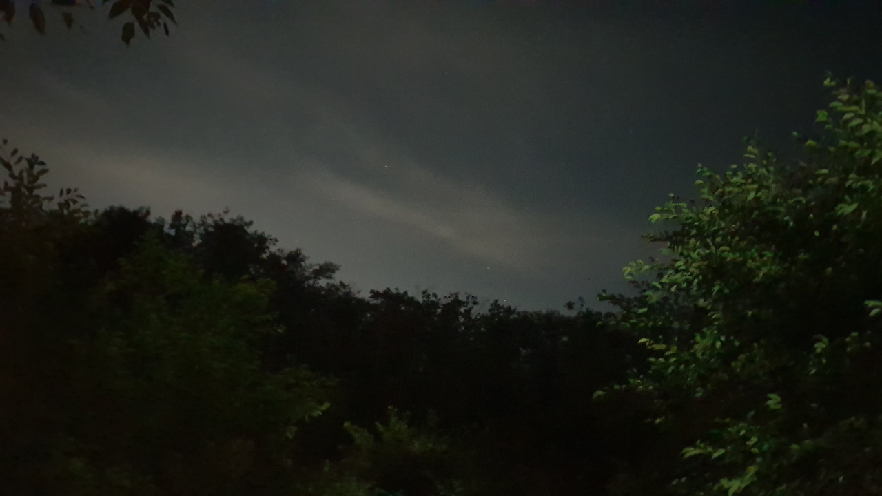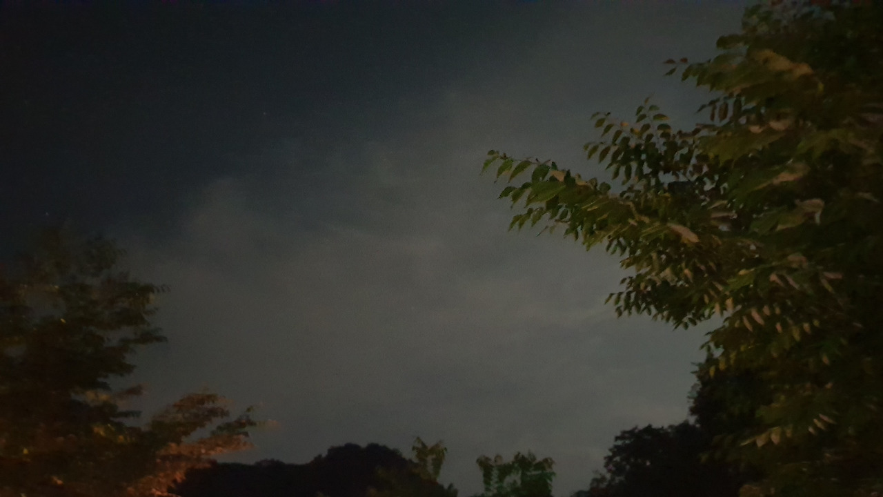 새까만 하늘에 총총 빛나는 별빛을 보았더라면 더 좋았겠지만, 오늘은 구름이 절반 이상을 뒤덮고 있다. 하지만, 머리 꼭대기서부터 아래로 훑어내려 오면 새로운 광경이 펼쳐진다. 온우주의 색이 바탕색을 이루고, 그 위로 약간 옅은 구름 색으로 덧칠한다. 계속 쳐다보면 움직이는 덧칠이다. 유유히 흐르거나 역동적으로 몸을 바꾸며 떠다니는 풍경이 경이롭기까지 하다.