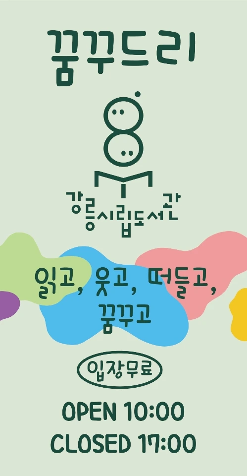 학교 끝나고 친구 집처럼 편안하게 들를 수 있는 강릉의 시끌벅적 도서관, 꿈꾸드리에 여러분을 초대합니다! 꼭~ 놀러 오세요^^ 약속