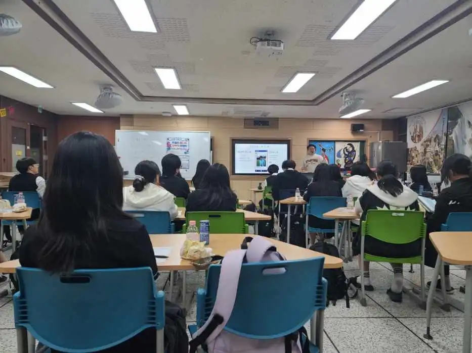 처음엔 긴장한 탓에 목소리도 살짝 떨렸지만, 학생들과 이야기 나누다 보니 저도 점점 안정이 되더라고요. 질문하고, 대답하고, 웃고 대답 듣고… 그렇게 2시간이 정말 금방 지나갔어요. 마지막에는 몇몇 학생들의 질문을 듣고 답하면서 강연을 마무리했어요.
