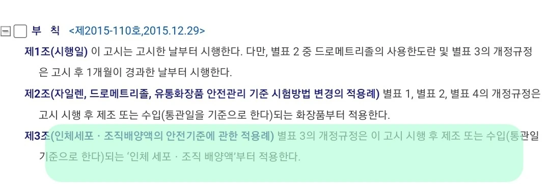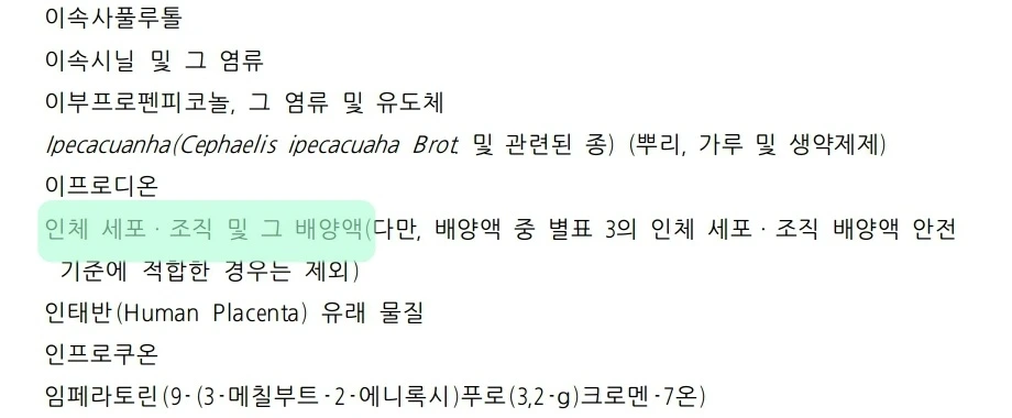 엑소좀은 화장품 안전기준 등에 관한 규정(식약처 고시 제2023-17호)내 부칙 제3조, 별표1, 별표3 내용 상 '조직 배양액'에 준하는 성분이다.