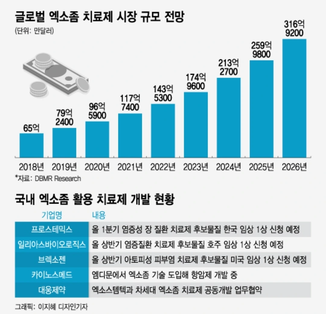 그런 와중에 엑소좀이라는 신규 물질이 상처 조직에서 염증은 줄이고 재생을 촉진한다니, 일부 화장품, 미용 업계 관계자는 서둘러 제품에 넣어 고가로 팔고 싶었을 것이다. 이런 식으로 주목받는 동물 유래 성분에 대한 업계의 반응은 이미 식약처에서도 잘 알고 있다. 하여 2015년에 관련 성분에 대한 안전 관리 기준을 정한 바 있으며 최근 등장한 엑소좀도 이에 준하는 성분이다. 그래서 국내 바이오, 제약 회사들이 열심히 엑소좀 치료제 및 관련 기술을 개발하고 있는 것과는 별개로 현재 상품으로 시판 중인 엑소좀은 모두 화장품 원료에 속한다.