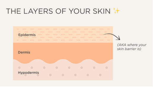 마치 벽돌같은 피부층 그림, 가장 맨 위가 피부 장벽이라고 하는 표피(출처: 구글 검색)