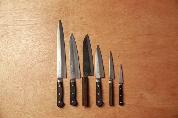 주방에서 가장 많이 쓰는 칼은 쉐프 나이프와 페링 나이프이다. 트라이얼 갈때나 이력서 돌리러 갈때는 가방에 간단히 이정도만 넣어 다니며 특수한 용도를 제외한 일반적인 프랩은 이 두 자루로 끝낼 수 있다.